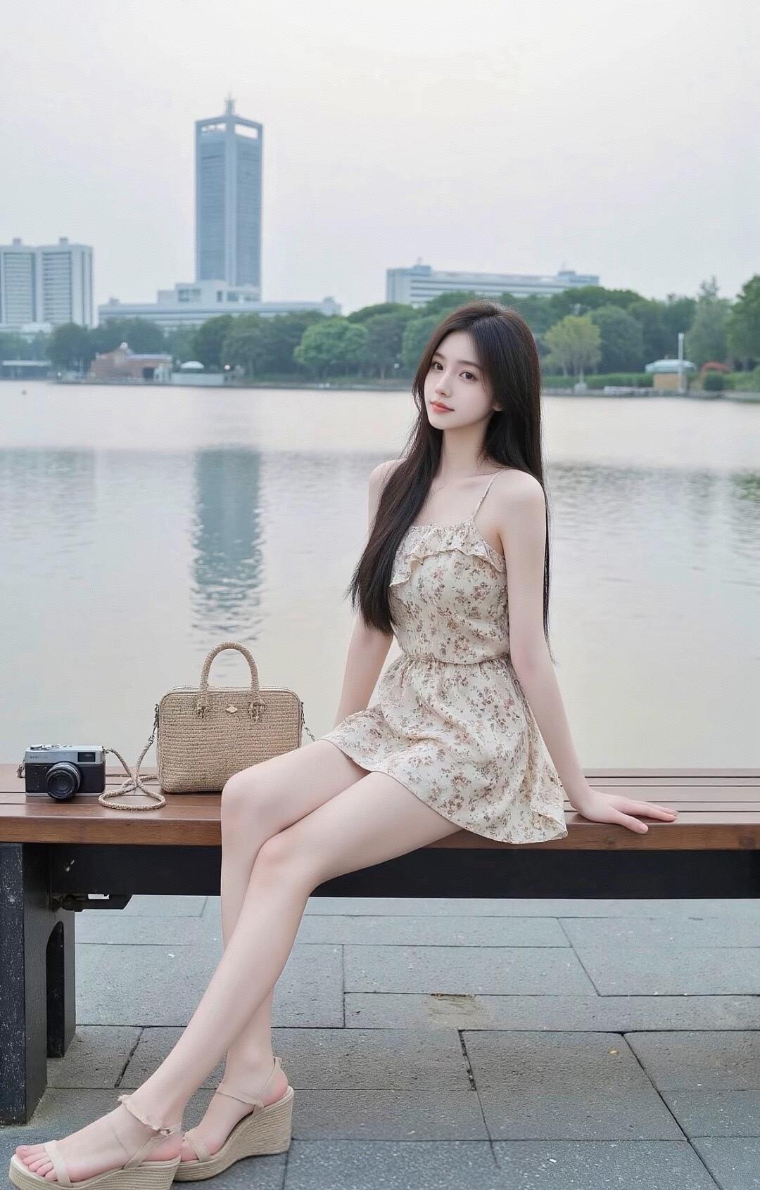 夏日湖畔,优雅穿搭,相机相伴,静享美好时光。