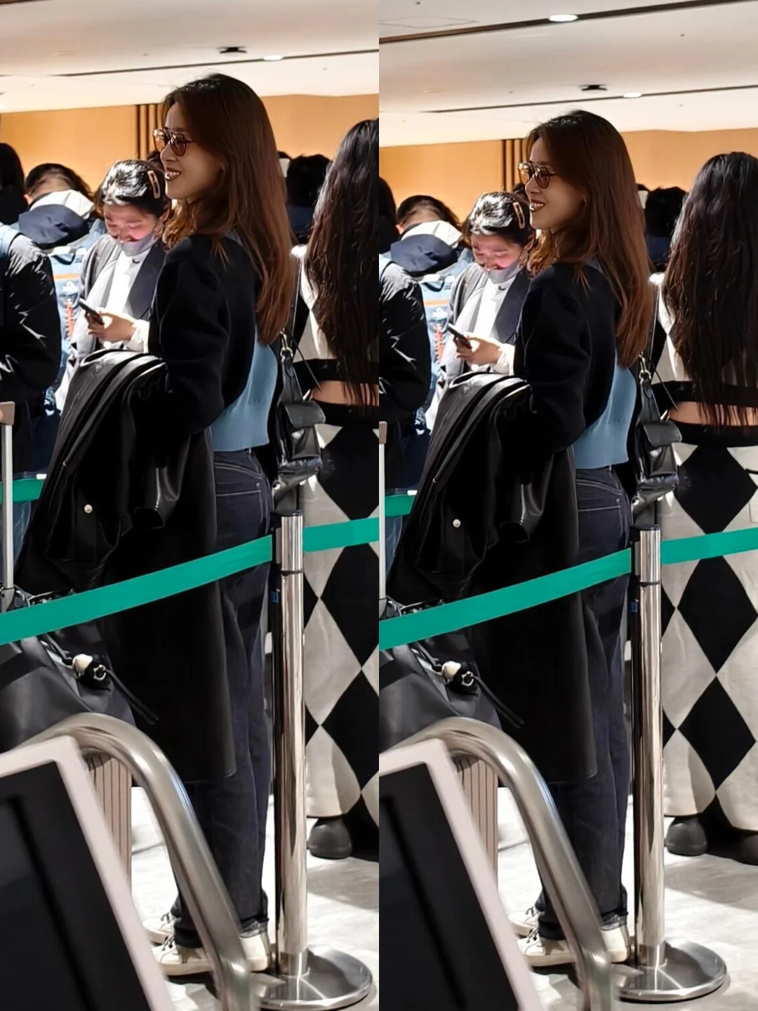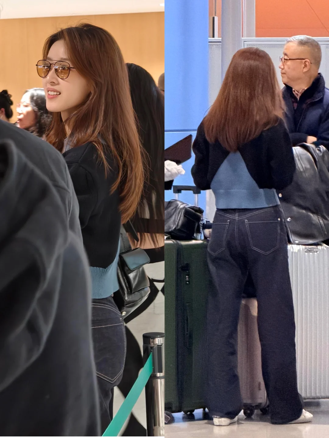 网友大阪关西机场偶遇章泽天,人群中真的很优越的存在,撞色毛衣配丹宁牛仔裤与小白鞋,很气质的一身! 偶遇图cr:哟哟