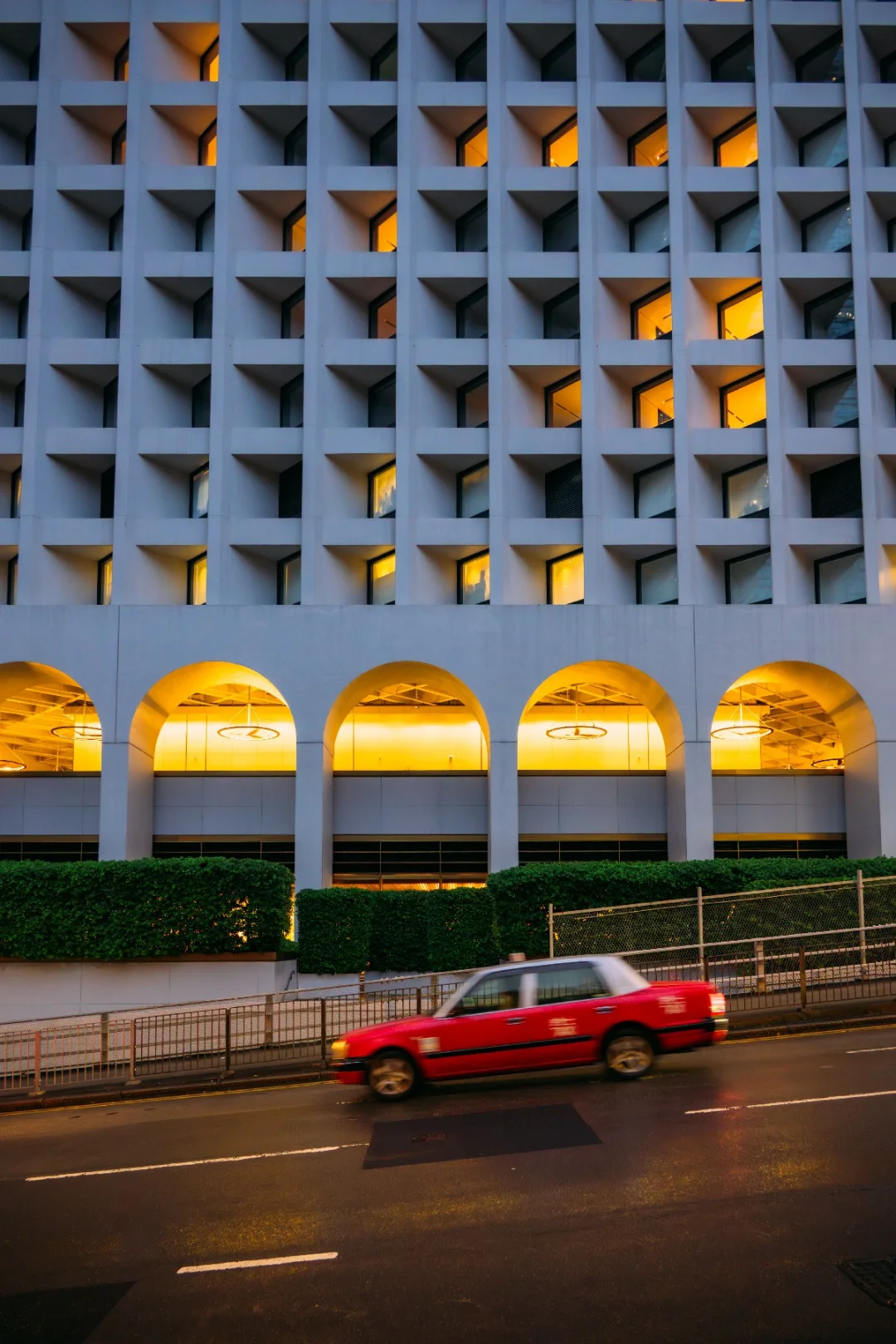 现代建筑与复古的士的完美同框