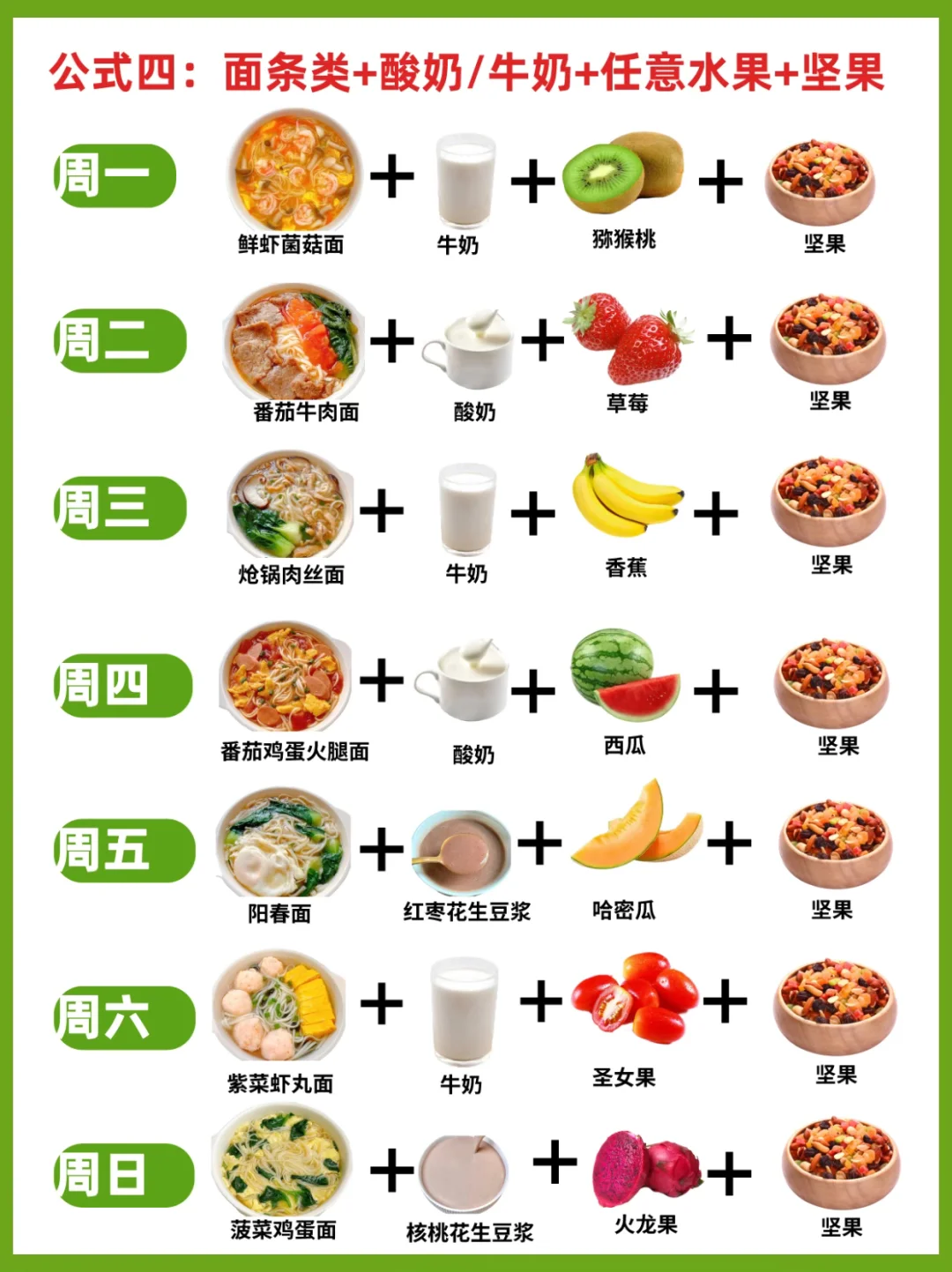 🔴公式四:面条类+酸奶/牛奶🥛+任意水果+坚果