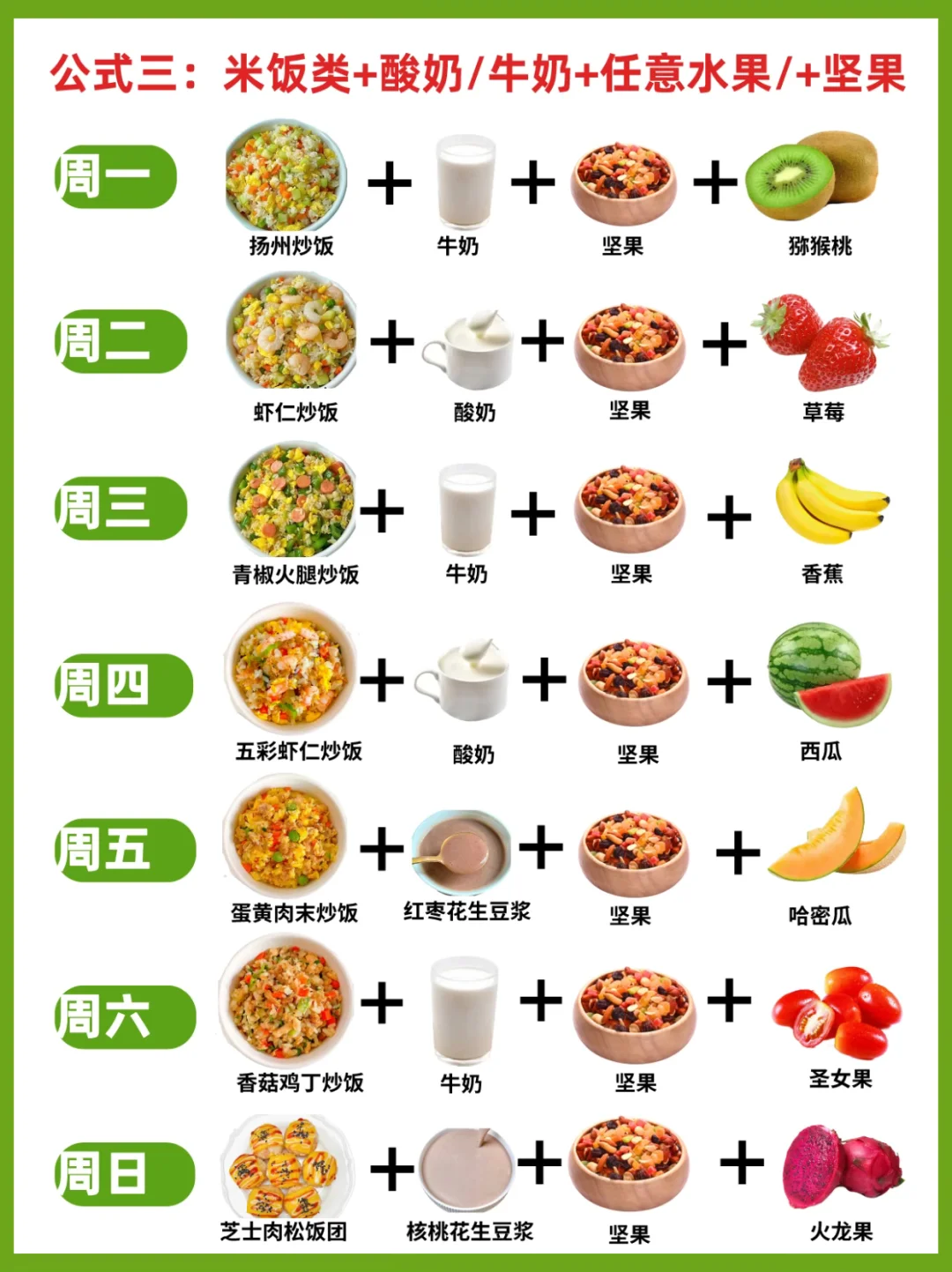 🔴公式三:米饭类🥣+酸奶/牛奶🥛+任意水果🌰+坚果