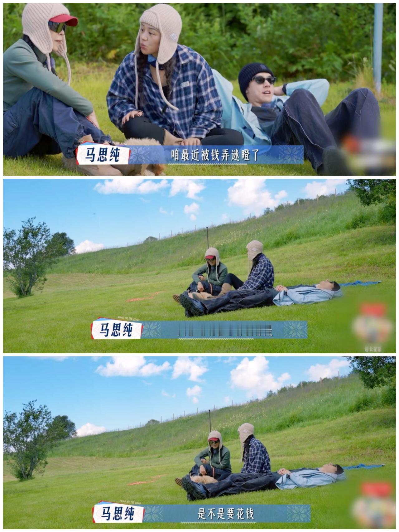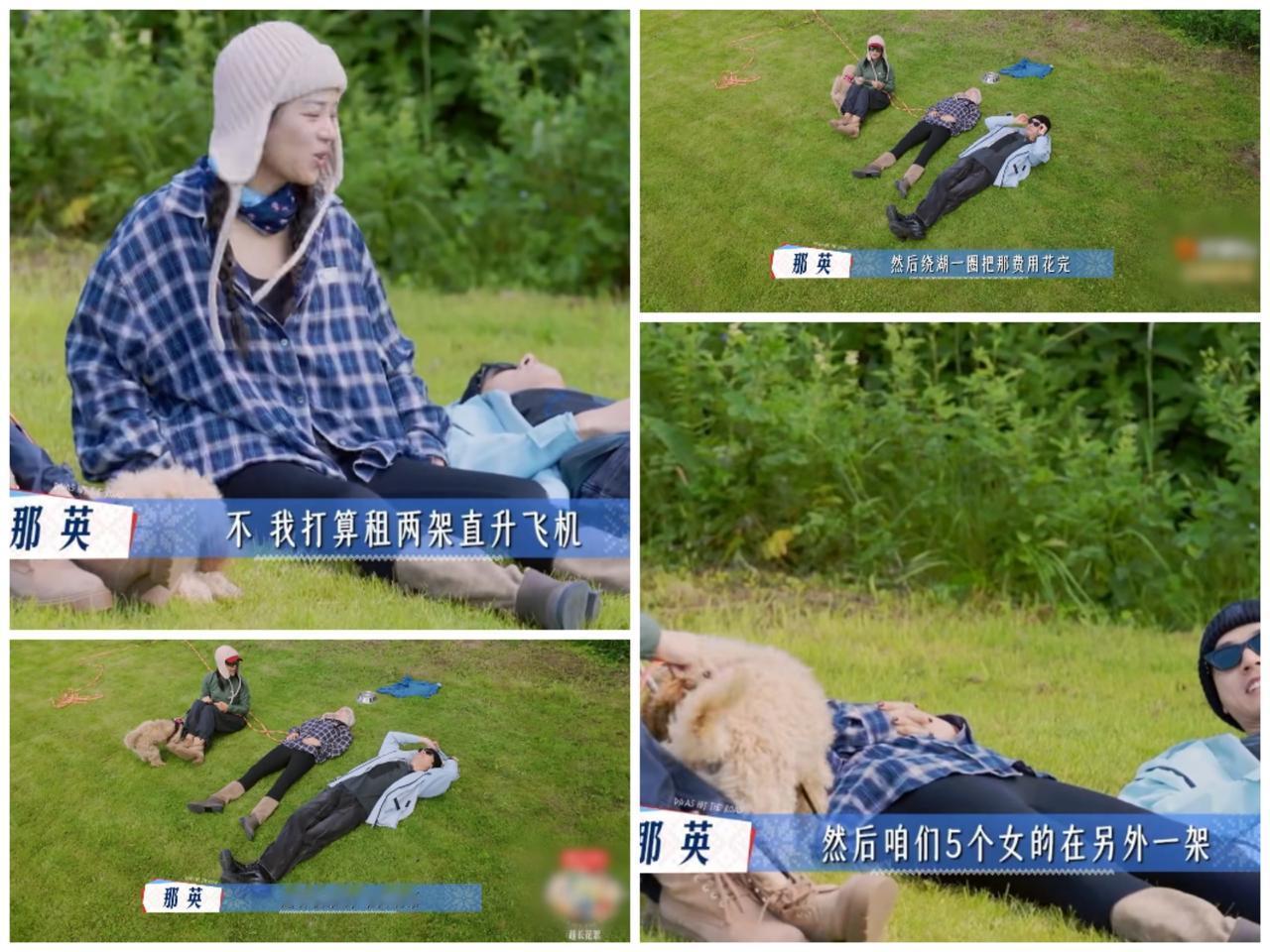 马思纯,那英这回懵了 不知所措, 只能静观其变。 那英,马思纯,龚俊海上漂浮完毕, 在草地上休息, 眼看漂浮教练在摆碗筷, 她们第一反应就是, 这顿饭又要花多少钱呀 不知道口袋里的钱够不够。 马思纯大胆猜想是 教练请客 也许不用钱呢。 这个情况就像, 一个人出去旅游, 口袋剩下没有多少钱了, 但是民宿老板给你 摆一大桌丰盛的饭菜, 但是你没有下单, 你的心情是不是很忐忑呢? 害怕老板强制消费, 到时无法脱身呀。 你看, 黄圣依妈妈和程潇去学制作茶饼, 黄圣依就害怕老板强制她们买 天价茶饼, 不买就不让走。 这个时候那英突发奇想, 她做导游那天就直接租两架直升飞机, 5个女生一架飞机, 2个男生一架飞机, 绕湖一圈, 把费用全部花完, 就剩回北京的飞机票钱。 那英真的敢想呀, 按照那英这个想法, 那个5万多旅游经费, 真的一点都不剩了。 幸好导演组没有采纳那英 这个疯狂的想法, 马思纯,龚俊就当作笑话听听就行了。 如果那英那样做, 完全不符合“勤俭节约”的花少7传统呀。