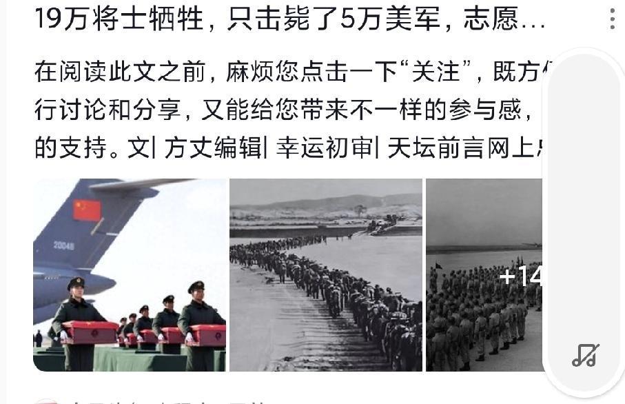19万烈士的鲜血,就只是换来了5万美军伤亡?这个数字其实哄骗了不少人!真实情况比我们想象的要震撼得多。 当年那场在朝鲜半岛上打响的战争里,咱们国家的战士们用铮铮铁骨对抗着敌人的钢铁洪流。不少人只盯着美军的阵亡人数,却完全没注意到这场战争的复杂性——咱们面对的可不是美军一家,而是17个国家拼凑起来的“联合国军”!其中韩军的伤亡就超过了60万,整个“联合国军”的总损失更是超过了百万。 总说“代价太大、不划算”的人,有没有见过零下40度的长津湖?有没有听过上甘岭坑道里,战士们在绝境中咬牙坚持的呐喊?正是因为有了这些用命换来的牺牲,才让战火一直没能越过鸭绿江一步。现在每年我们派战机去接烈士们回家,一路护航,这就是对他们最好的告慰。 战争从来不是一笔划算的买卖,不能光用数字来算得失。要是没有那代人用命去拼,哪来咱们现在安稳的日子?当我们在和平的阳光下过日子时,可别忘了那些永远留在异国他乡那个寒冷冬天里的年轻生命。你觉得这场让咱们挺直腰杆的立国之战,到底有多重要?我们都该记住这份沉甸甸的意义。
