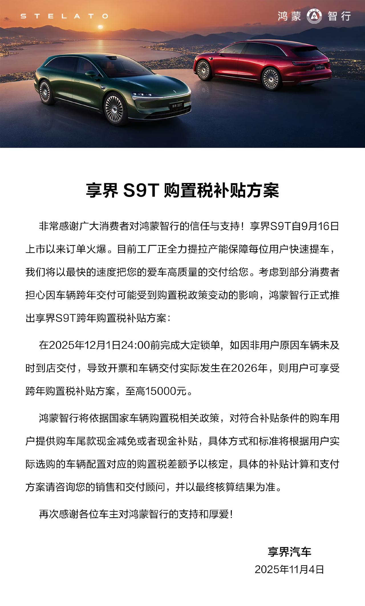 2026年1月1日起:调整为减半征收购置税(实际税率5%),每辆车减税额上限降至1.5万元,政策持续至2027年底 很多车企都发布了跨年购置补贴,最高1.5万,就是为了留住用户
