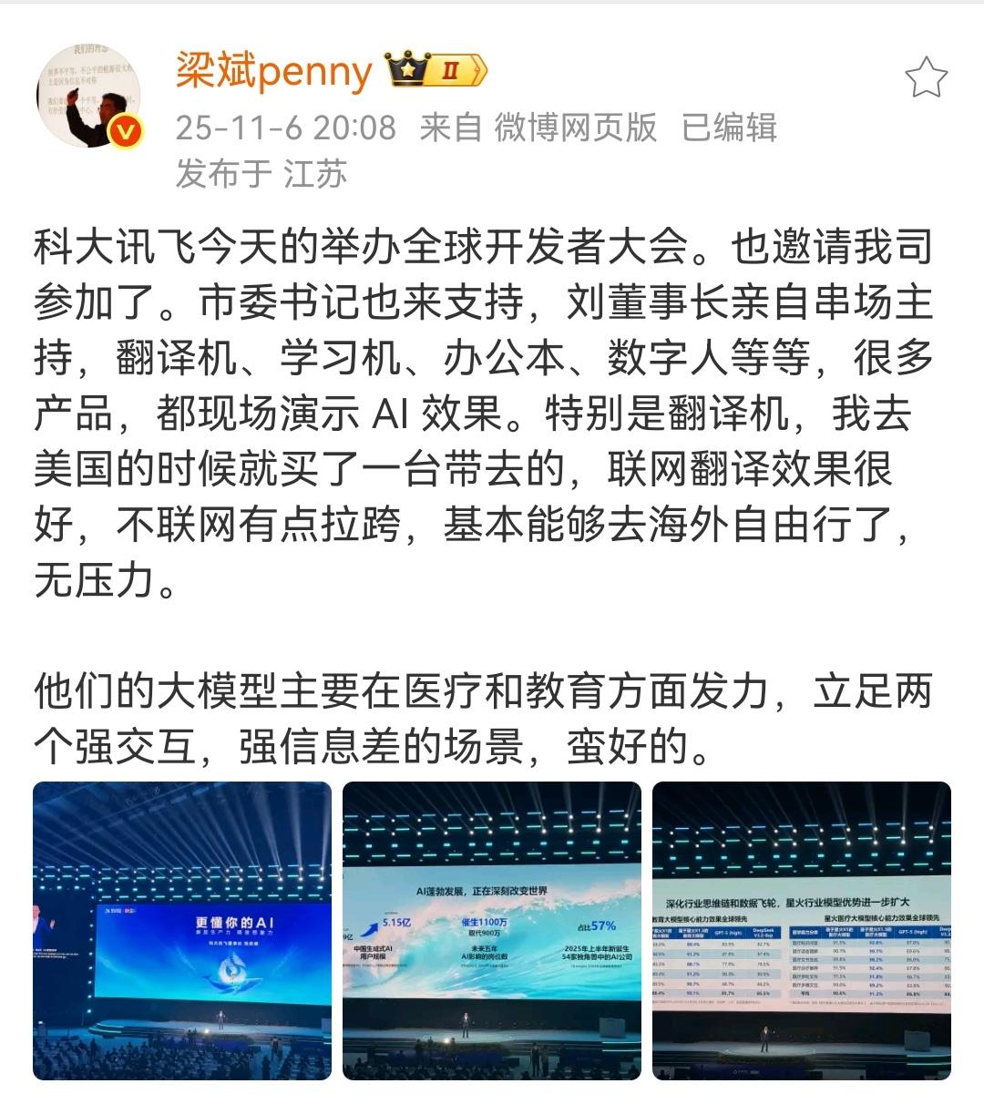 中国AI大模型大有可为。 (图一至图三)中国不少AI的大模型数据发展迅速,并且坚持开源的路线,为避免被美国商家白嫖,修改了相应的授权协议。 (图四)美国英伟达公司老板黄仁勋相信,中国厂家在AI竞赛中后劲十足。 (图五)中国厂家由于算力不足恐惧症,只能走独特的道路,更重视数据质量,更重视数据训练效率,独辟蹊径。 (图六)中国AI应用的开发也是大有可为,涌现出很多公司,专注于特定领域。