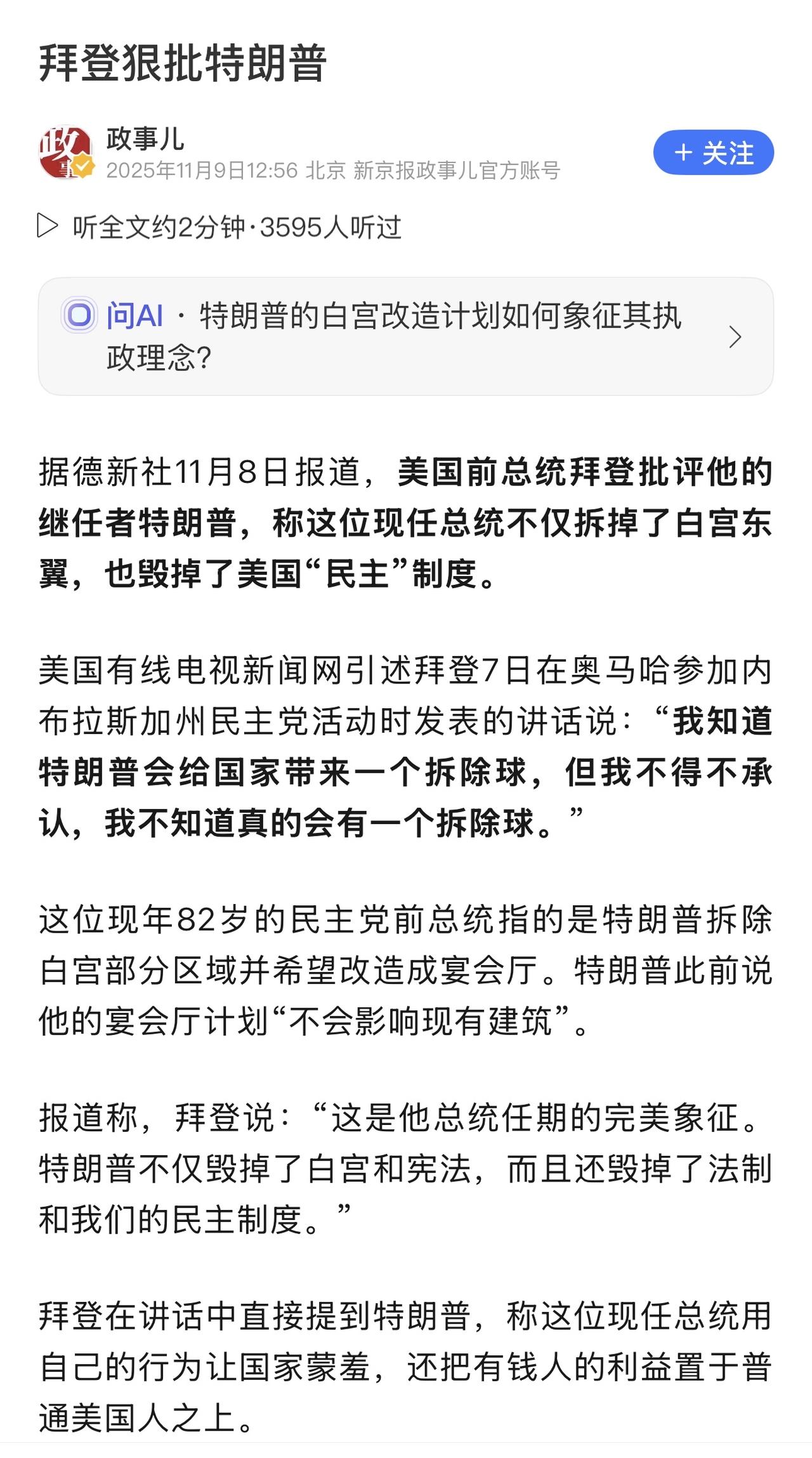 历史上白宫的改造工程之所以鲜少引发争议,只因其无关宏旨,或未陷入高度极化的政治泥潭。比如罗斯福曾加建游泳池,就基本上风平浪静。 反观今日,总统的日常行为稍有不慎,一旦触及意识形态的敏感神经,便会被政治极化的放大镜无限聚焦,从而引爆远超事件本身的轩然大波。这已远超建筑本身的变迁,而是美国政治生态演变的一个深刻缩影。