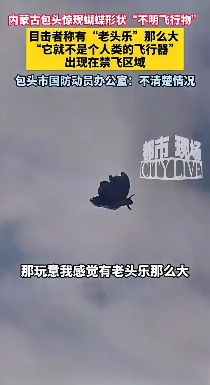 近日,内蒙古一网友拍到距离地面50多米的高空出现一蝴蝶形状“不明飞行物”,目击者