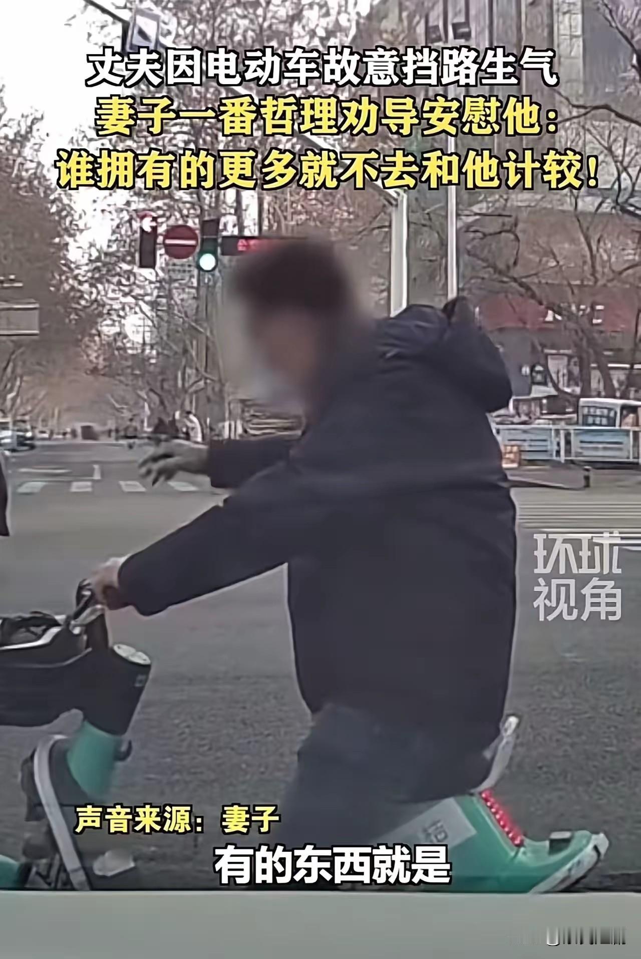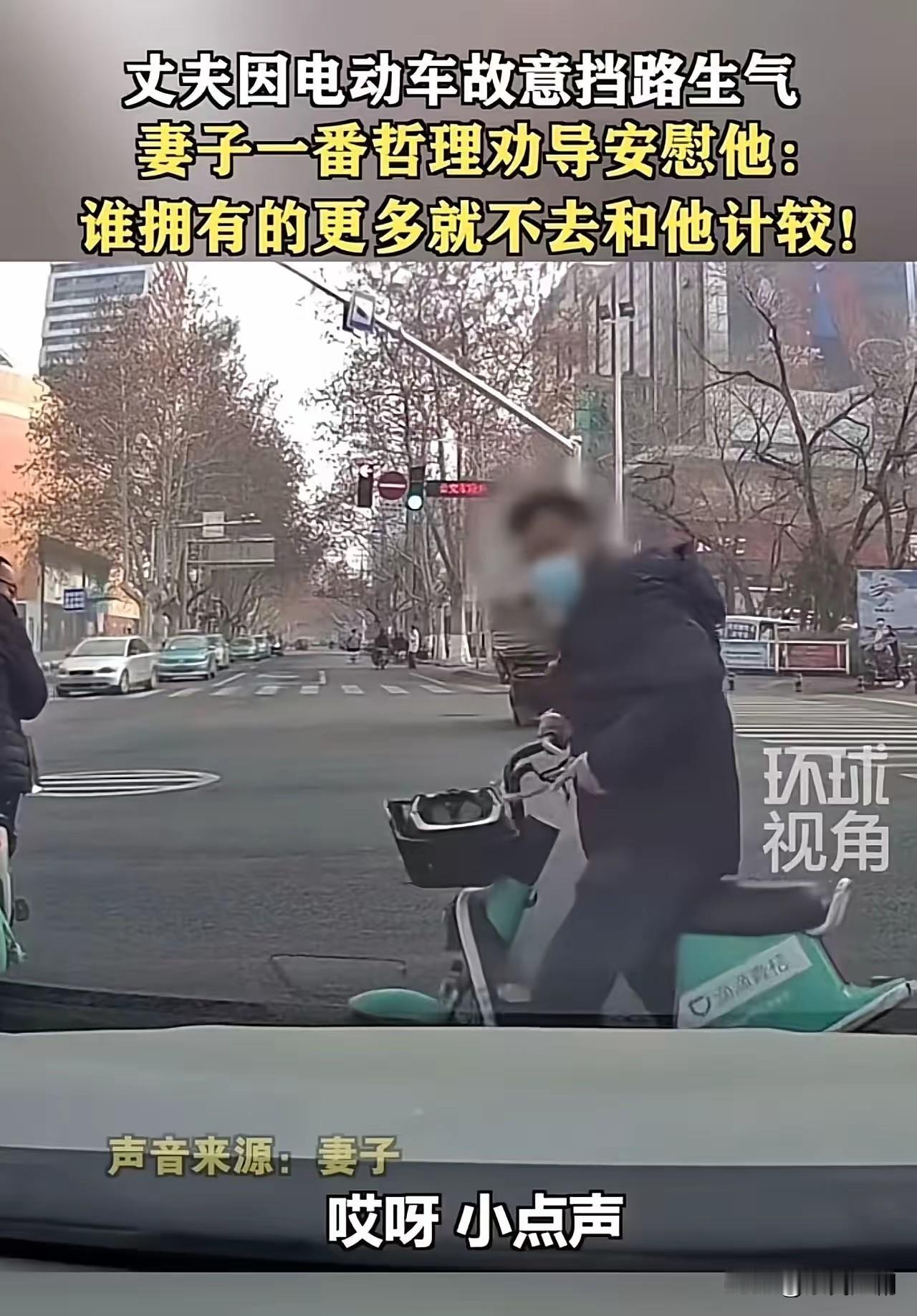 “真的贤妻夫祸少!”近日,山东的一段温馨场景在网上引发众多网友点赞与转发。视频里,一对小夫妻驾车出行,在路口右转时,遇到一位骑共享单车的大叔竟在机动车道骑行,挡住了车子的去路。这场景本易引发争执,令人感动的是,关键时刻妻子站了出来,以温和且富含哲理的话语,成功劝阻情绪激动的丈夫,避免了一场可能的冲突。 事情是这样的:车子靠近路口时,丈夫见大叔骑在机动车道上,觉得极不合理,顿时情绪激动,打算与对方“干一架”。这时,妻子赶忙出声劝阻:“别冲动,事情或许没你想得那么简单。”她接着说:“每个人都有难处,大叔也许有他的苦衷,不能只看表面就下判断。”她的话温和又有哲理,提醒丈夫莫因一时愤怒而冲动行事。 妻子的劝导平息了丈夫的怒火,让现场氛围更显理性。网友纷纷点赞:“妻子堪称贤妻良母的典范!用智慧化解了矛盾。”有人评论:“她的话让我明白,遇事多些理解和包容,社会会更和谐。”这段简短对话,彰显了家庭成员间的理解与包容,也反映出面对矛盾时,理性与善意的重要性。 实际上,该事件折射出社会常见的交通乱象,如共享单车随意骑行、交通规则执行不严等问题。面对此类情况,冲动行事只会让事情恶化。更重要的是,妻子的话提醒我们:在复杂社会中,理解与包容比争执更能解决问题。每个人都可能有难处,换位思考或许能找到更好的解决办法。 此事也让人反思家庭沟通方式。夫妻间的理解与包容,是家庭和谐的关键。妻子一句“别冲动,事情可能没你想的那么简单”化解了丈夫的怒火,也让公众看到,理智与善意才是解决冲突的良方。 总之,山东这对小夫妻的故事,传递了深刻的道理:面对矛盾,退一步海阔天空,用理解和智慧化解冲突,生活才会更美好。正如网友所说:“贤妻夫祸少”,家庭的和谐需要每个人用宽容与智慧共同维护。