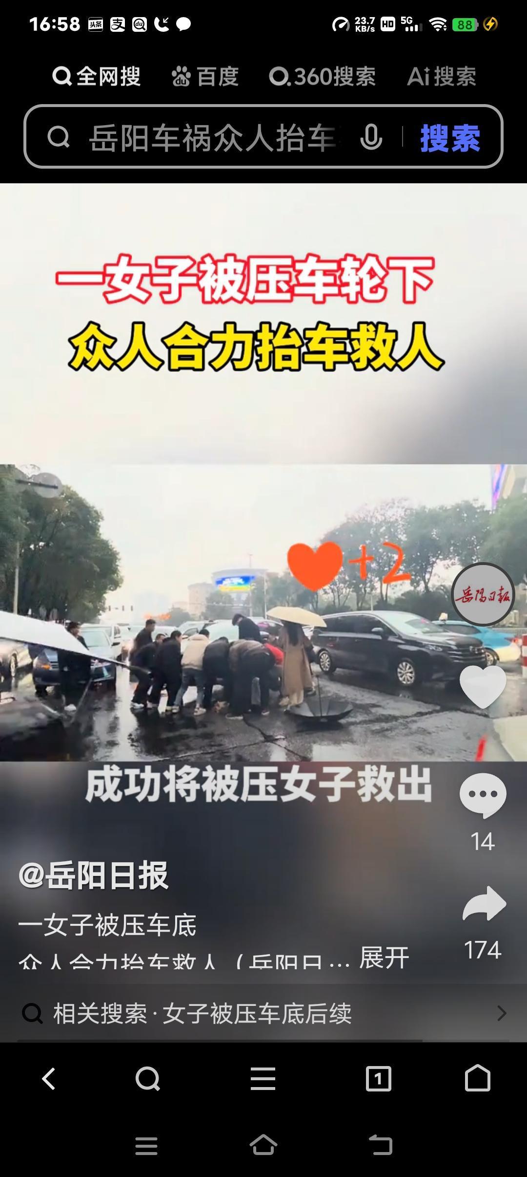 《暴雨中的生命托举:岳阳街头,一群陌生人用肩膀扛起人间温度》 (开头续写) 7月的岳阳,暴雨倾盆。 一辆白色轿车在积水中失控侧翻,车内传来孩子的哭喊,水位不断上涨,车门变形无法打开…… 就在这生死瞬间,路过的外卖员、买菜的大爷、穿校服的中学生、甚至拄着拐杖的老人,像听到无声的集结号,从四面八方冲向事故车辆。 “一!二!三!” 二十多双手同时抵住湿滑的车身,在暴雨中硬生生将1.5吨重的汽车抬起45度角。当被困母女被拉出的那一刻,泥水混着泪水在每个人脸上奔流——这不是电影特效,而是7月15日发生在岳阳巴陵中路的真实一幕。 1. 比暴雨更急的,是普通人的本能 事后调取的监控显示:从车祸发生到群众集结,只用了23秒。没有指挥,没有犹豫,穿蓝衣服的外卖小哥甚至扔掉了刚接的订单。 “哪来得及想危险?”参与救援的修车工老周满手油污,“听见小孩哭,腿自己就冲过去了。”这种刻在中国人骨子里的“集体肌肉记忆”,曾在汶川地震时撑起垮塌的楼板,在郑州暴雨中连成救命的人墙。 2. 抬车救人背后,藏着最朴素的生存哲学 物理学上,1.5吨需要至少20个成年人的合力。但心理学上,只需要一个母亲绝望的眼神。 当被问“不怕车爆炸吗”,超市老板娘王姐的回答让全网破防:“我闺女也这么大,要是困里头的是她呢?”这种将心比心的“共情能力”,正是文明社会最珍贵的防撞梁。相比之下,某些豪车车主“积水溅人”的新闻,显得何其讽刺。 3. 为什么这类新闻总能刷屏? 数据显示,类似事件每次曝光都能引发10万+讨论。究其原因,在“扶不扶”成为社会命题的今天,这些自发救援像一道刺破阴霾的阳光—— 我们渴望被证明:利他基因从未消失,只是藏在快递服、菜篮子和学生校服之下。正如网友热评:“他们抬起的何止是车,更是我们对人性的信心。” 这场暴雨终会停歇,但湿透的衣衫下,那具温热的人性脊梁永远挺拔。 “如果当时你在现场,会第几个冲上去?” 在评论区分享你经历或见证的暖心救援,让善意持续接力!暖心救援故事 城市温情故事 抬车救人