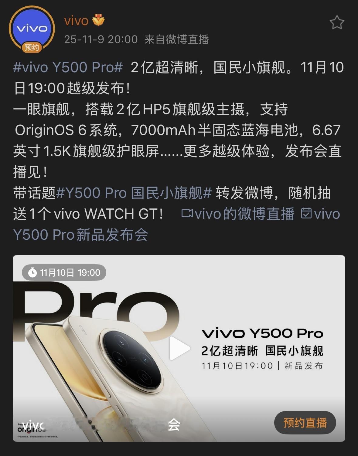 明晚7点,vivo Y500 Pro发布会,卖多少钱起步合适?前5个猜对价格送个红包