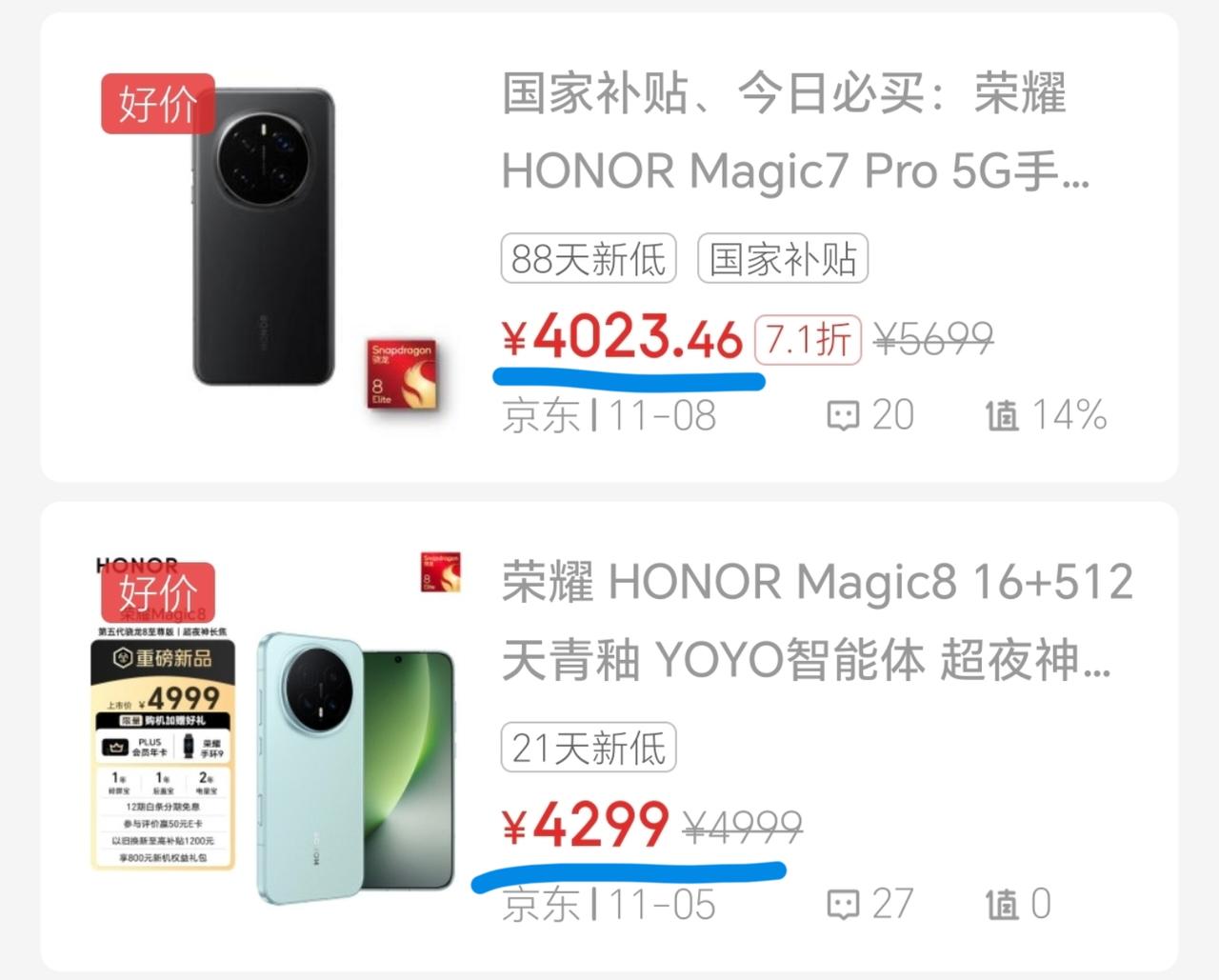 太难了[捂脸]荣耀Magic7Pro和荣耀Magic8新老旗舰交替,价格还相差