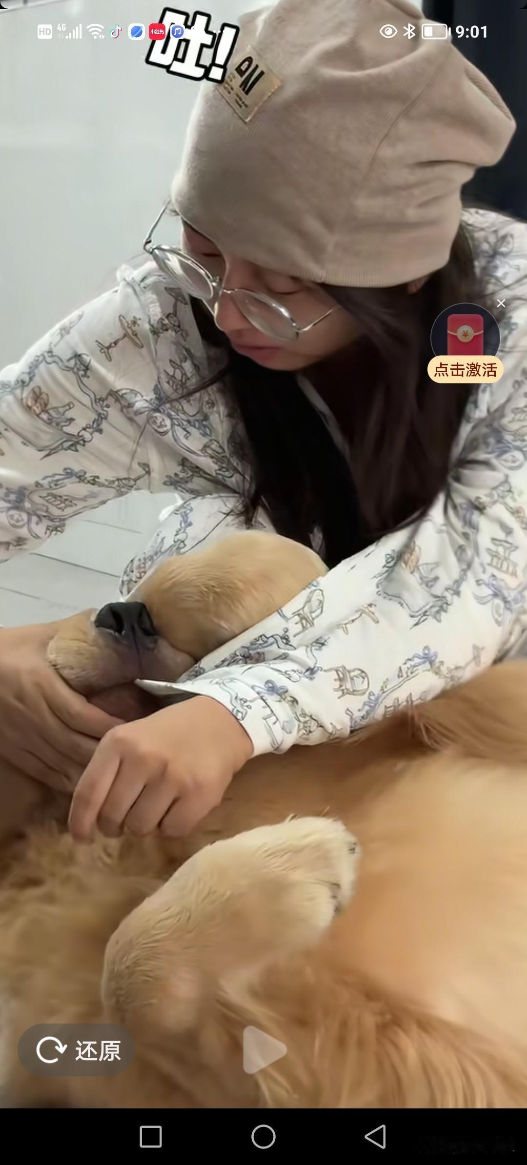 金毛会故意犯点儿错,好让妈妈打自己。它最爱妈妈打自己了,妈妈打它就像在身上挠痒痒似的,轻轻打一下,一点儿也感觉不到疼,反而很舒服。要是不犯错,还享受不到这种待遇呢。金毛