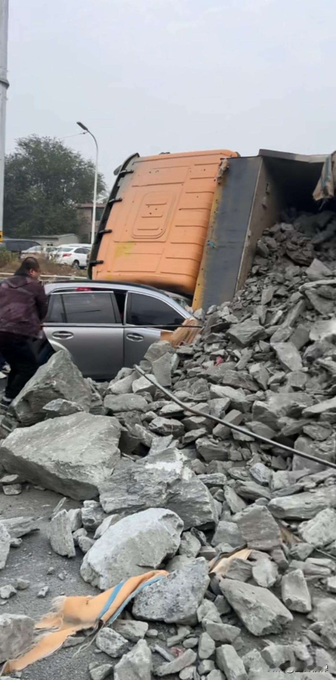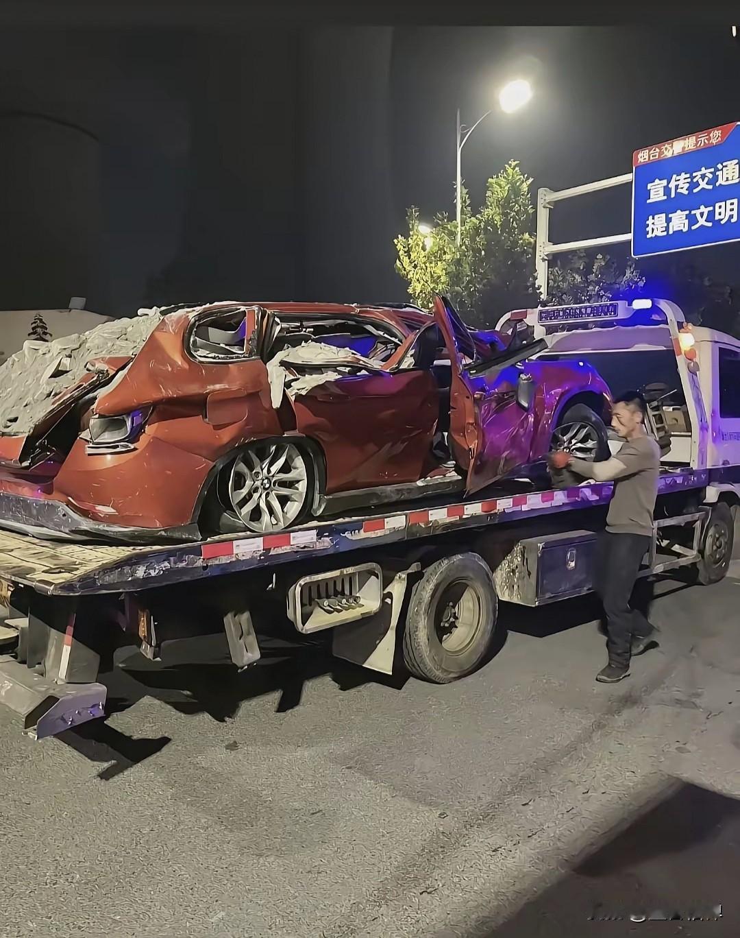 发生在烟台芝罘区的这起事故,渣土车在侧翻前,红色宝马车已经启动了试图转向躲避,可惜未能成功。 路口遇到大货车转弯的时候,一定要保持足够的安全距离,切勿与之并行或者抢行。 11月7日,发生的这起交通事故,一辆渣土车路口转弯时侧翻,压住了对向车道的两辆小轿车,官方通报这起事故造成一死一伤。 从流传的行车记录仪画面和现场视频来看,渣土车在转弯时发生侧翻,车斗没了内碎石渣倾斜而出,红色宝马车车顶被压垮,受损极其严重。 路人和行车还是都要注意大货车,还有大货车的视觉盲区,前几天晚上十二点多,本人看到一外卖小哥骑电动车在机动车道,后面一辆渣土车狂按喇叭,也没有减速。 两车相距几米远,我在路边等红绿灯看的出了一身冷汗,幸亏小哥转弯变道,各走各的道了,不管怎么样,安全还是要摆在第一位。