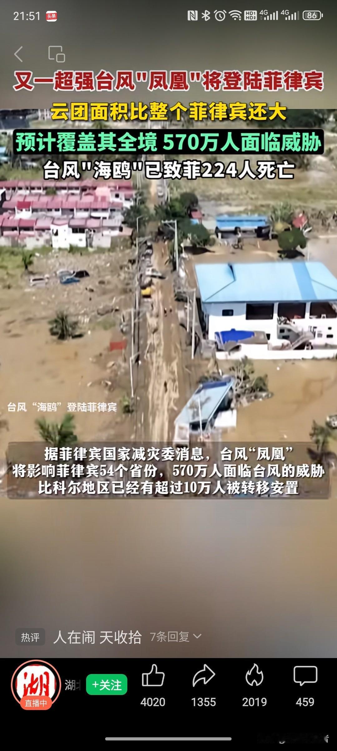 百万人大逃亡!台风“凤凰”今夜登陆菲律宾 菲律宾这回真遭大劫了!超级台风“凤凰”攥着185公里/小时的狂风眼,正像头脱缰的野兽往吕宋岛()猛扑,今晚或凌晨就要在奥罗拉省沿海登陆。你说巧不巧?四天前“海鸥”刚在这儿撕开224条人命,现在“凤凰”又追着来补刀! 最吓人的是这数字——110万人被连夜“赶”出家门!民防局说这是“最高级别警报”,可老百姓哪见过这阵仗?风还没吹到奎松省,波利略群岛的海浪已经能掀翻渔船,阵风230公里吹得电线杆都跟纸糊的似的。奥罗拉省和新怡诗夏省的老少爷们儿,有的抱着娃、拎着鸡往山上跑,有的蹲学校体育馆里啃干粮,眼神里全是“这趟能活命不”的慌。 你说菲律宾政府急不急?上回“海鸥”刚走,尸体还没全挖出来,这回又得操心百万人的吃住。可怪就怪在这台风一个接一个——先是“海鸥”凌晨偷袭,再是“凤凰”追着登陆,跟商量好似的。有村民哭着说:“这哪是台风,是阎王爷来收人!” 现在最揪心的是,台风眼今晚就要擦过奎松省的波利略群岛。那里可有不少渔村,要是风暴潮叠加强风,怕是连屋顶都能卷到海里去。气象局()说“凤凰”强度还维持巅峰,可谁知道它会不会突然拐个弯?要是转向马尼拉(),那可真是要捅大篓子了! 你说说,110万人撤离的背后,得有多少家庭支离破碎?刚埋了“海鸥”的亲人,现在又要防“凤凰”的灾。这老天爷是不是在跟菲律宾较劲?要是台风突然转向,我们这些普通人又该怎么应对?评论区聊聊,你那儿要是遇上台风,最怕什么? 这哪是自然灾害,分明是场生死大考!菲律宾挺住啊,别让“凤凰”再添新伤!