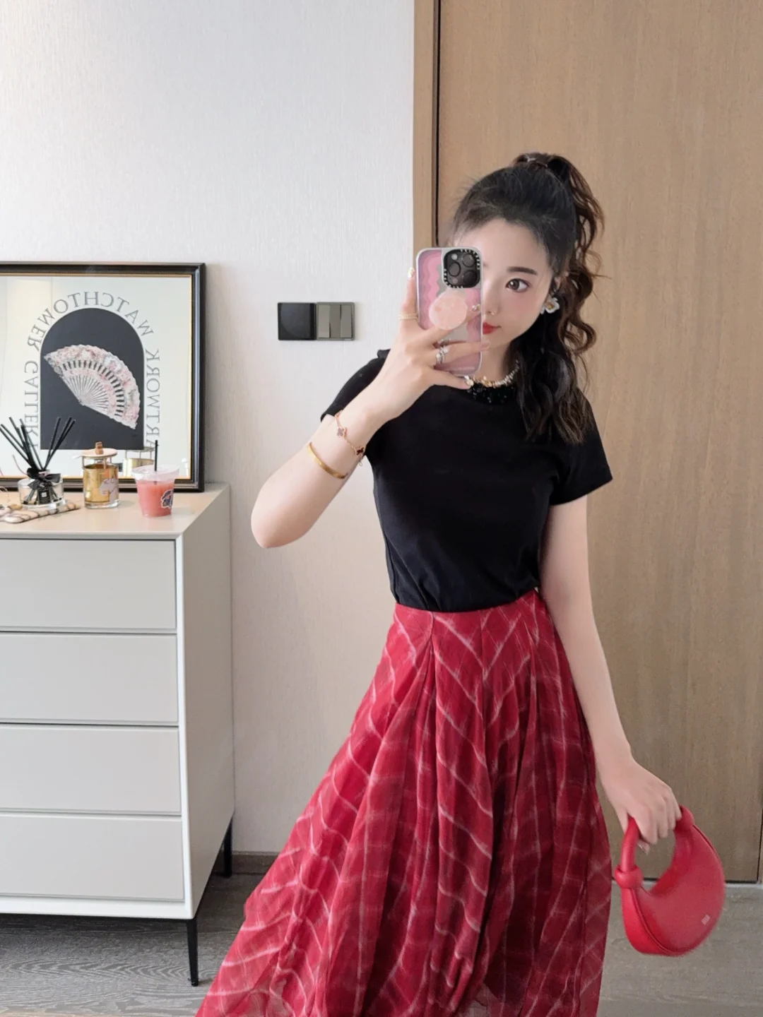 初夏超明媚的一套!真的会反复爱上格子裙呐!