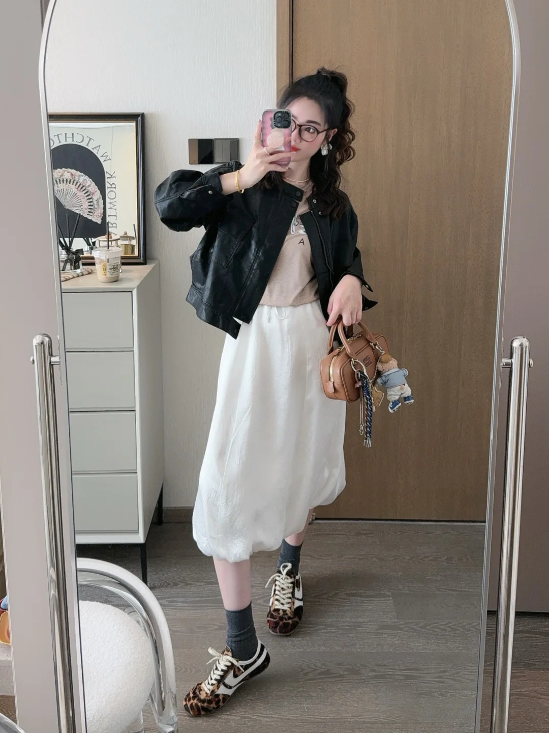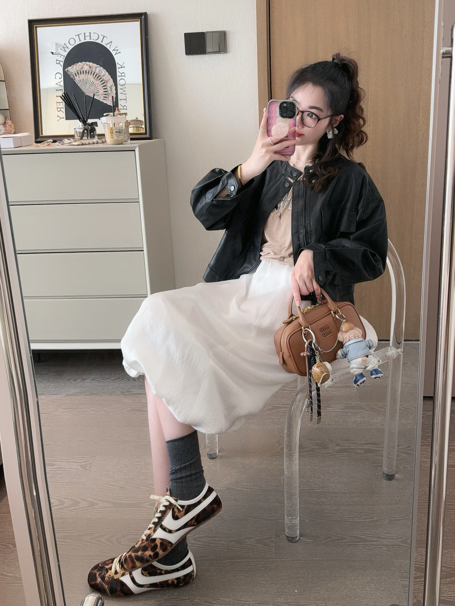 皮衣➕小白裙谁不爱啊!秋天就这么穿吼吼看!