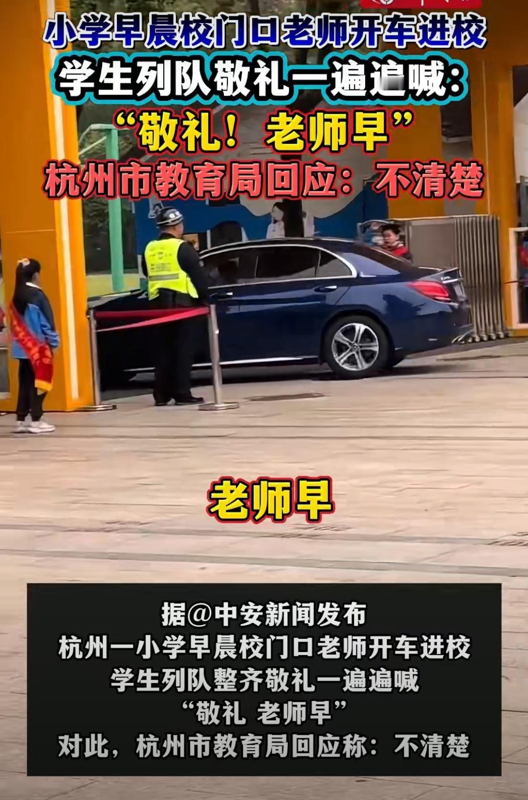 陈震:哎! 杭州某小学安排学生向老师的车辆敬礼喊老师早,老师的车辆不乏有一些名贵的豪车,但是没有一个老师哪怕把车窗摇下来,回应同学的热情。 尊重是相互的,是一个人看到这种画面也觉得不舒服吧,从小就向学生灌输这种观感是不妥的。 各位是怎么看的?欢迎评论区留言。