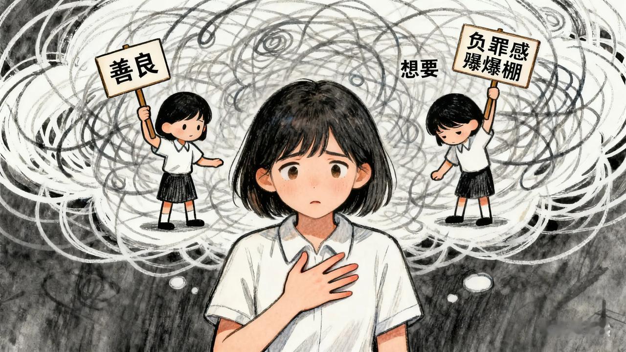 感同身受的一段话: 道德感太高根本不是啥好事,一旦做了我认为不好的事就有很强的负罪感和愧疚感,好想死不要脸没心没肺的活一次。 明明没伤害谁,只是多为自己争取了半分,夜里就翻来覆去复盘八百遍,怕是不是太计较;明明是别人先越界,却因为没立刻翻脸,反倒怪自己不够“硬气”又嫌自己“太懦弱”。 看着那些揣着明白装糊涂的人活得风生水起,那些凡事先顾自己的人过得舒展自在,而我困在“该怎么做才对”的枷锁里,连拒绝都要反复掂量会不会让对方不快,连偶尔的“自私”都要给自己扣上“不够善良”的帽子。 多想也能心安理得地敷衍不想管的事,大大方方地争抢想要的东西,不用为一句无心的话纠结半天,不用为一次小小的“出格”自我谴责。 原来活得松弛,才是最奢侈的特权。
