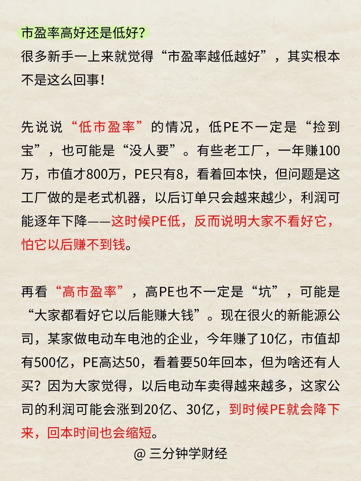 市盈率把公司股价和每股盈利直接挂钩,让你一眼看清股价是被高估还是被低估。面对那些市盈率合理、盈利稳定的企业,还会错过低吸高抛的好机会吗?