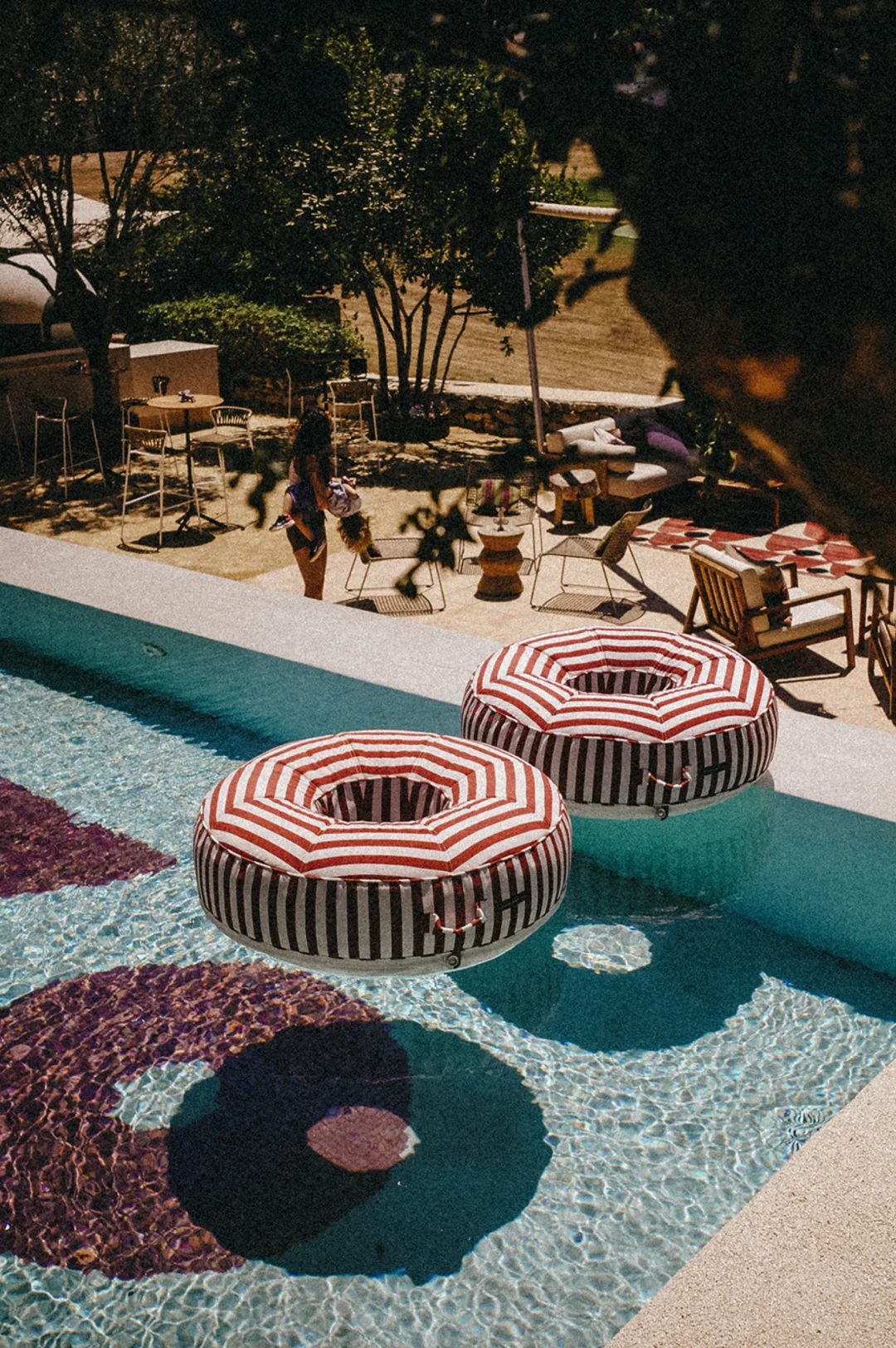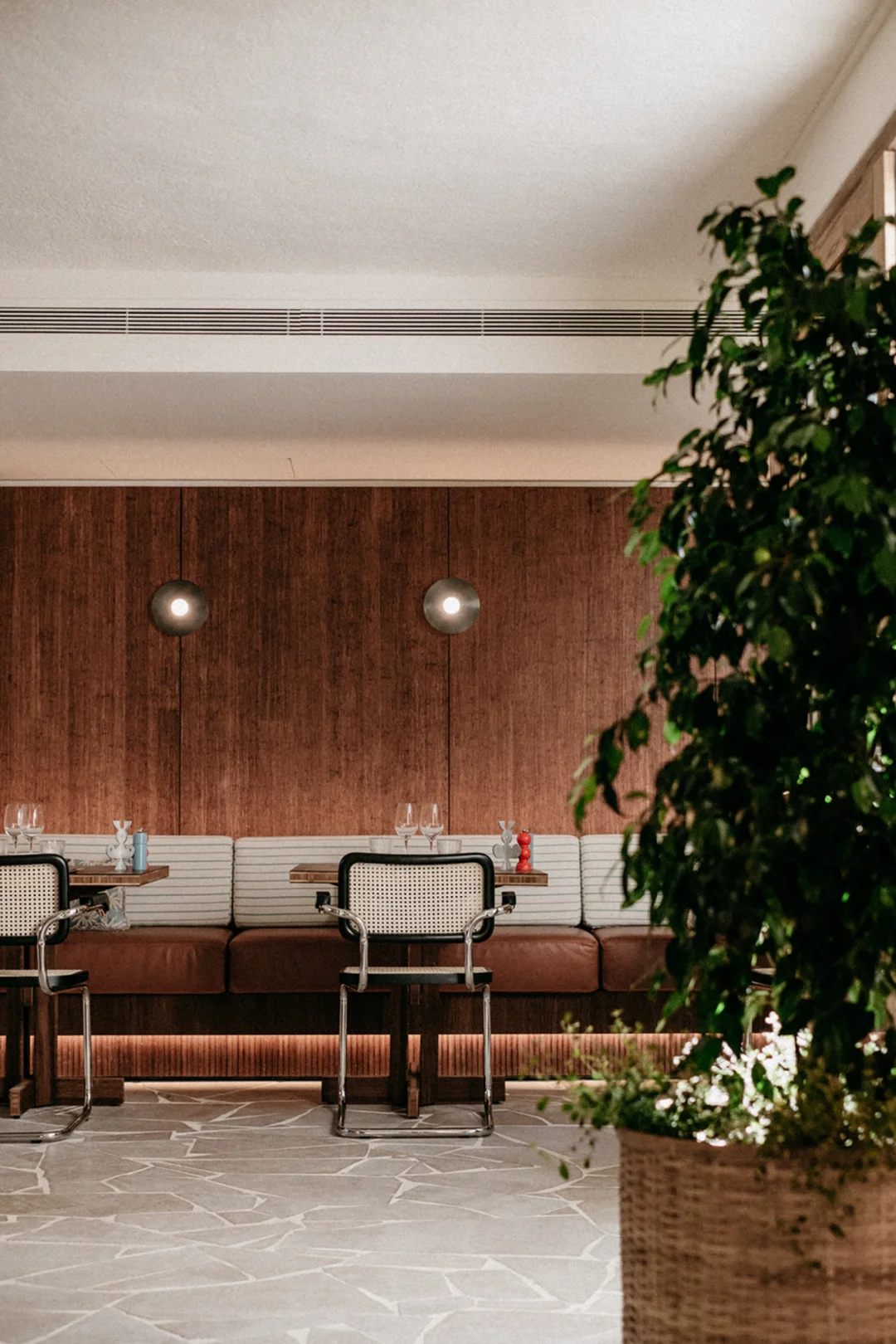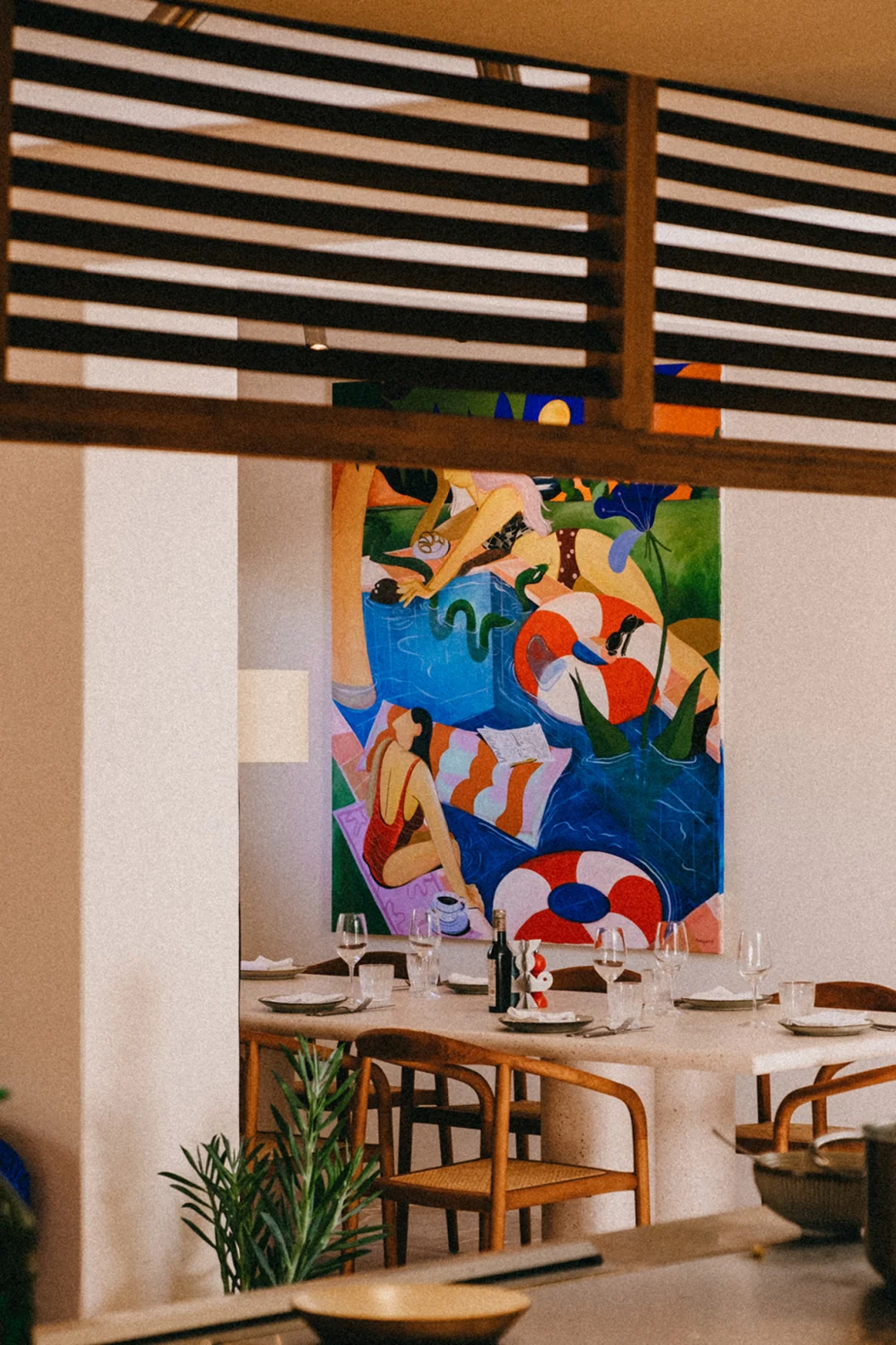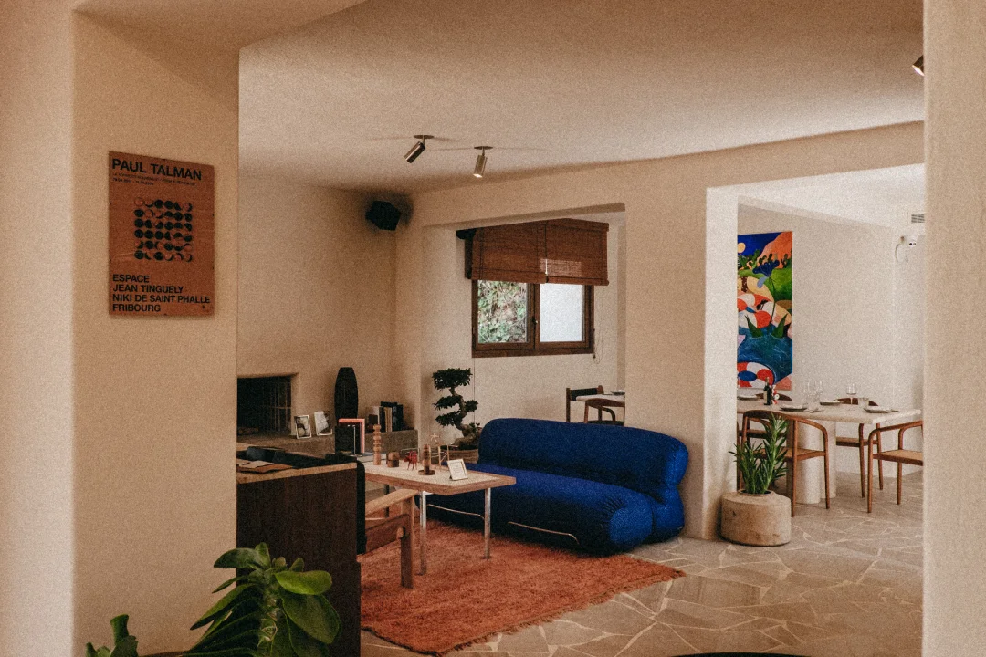它的前身是一栋始建于 70 年代的会所,曾是邻里社交和派对的热门场所。如今它被重新塑造为一个可体验的复合空间:你可以在此享用精致餐食,也可以在泳池边度过慵懒午后、或是于黄昏时分眺望球场、随性穿行于房子之中,在书架与画作之间驻足。