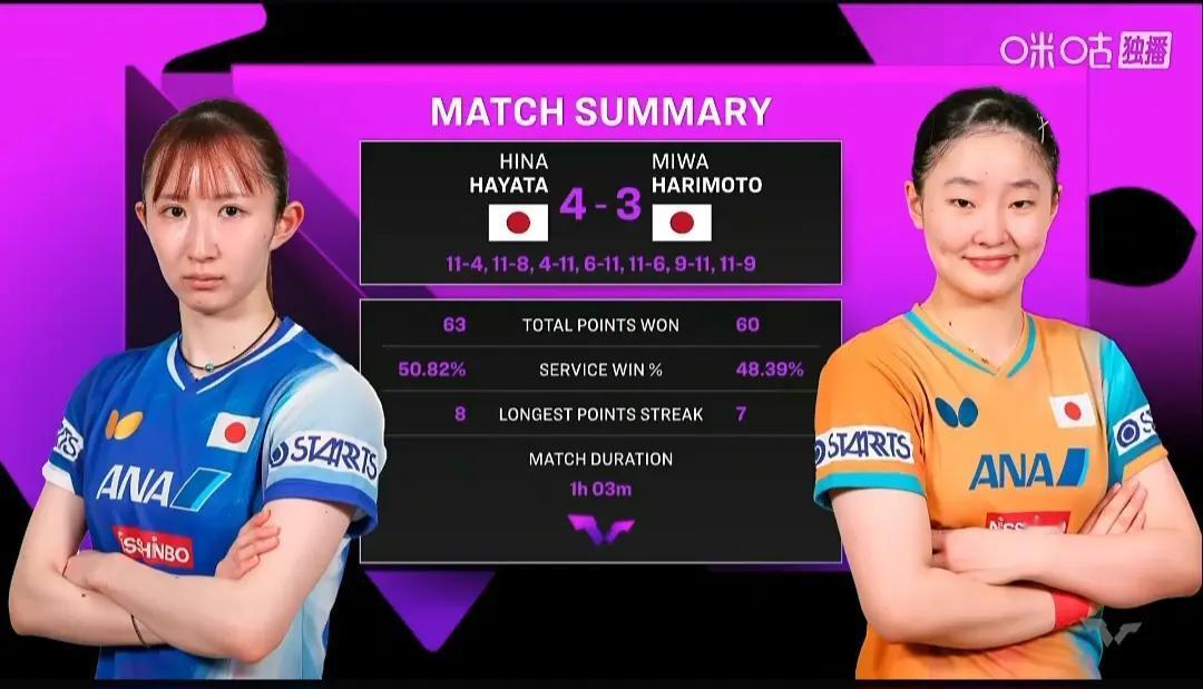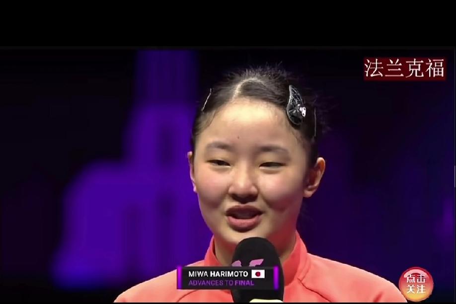 张本美和 4:2申裕斌进入决赛接受采访时她的笑容灿烂,然而仅差2分与冠军擦肩而过, 张本美和决赛和早田希娜七局苦战,几度领先又被追分逆转,第七局11:9不敌早田希娜。与 法兰克福女单冠军失之交臂。 早田希娜4:3张本美和忍不住哭了,真不容易,早田希娜羸了哭了。