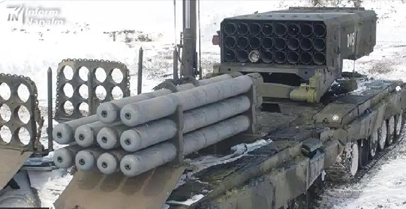 俄罗斯军队已经开始拆解用于 TOS 型多管火箭炮的220毫米温压火箭,以便将其用于攻击无人机。 TOS 热压火箭在爆炸时会加热到极高的温度,足以熔化金属。多管火箭炮 机载火箭炮 多功能火箭炮 远火火箭炮 远箱火箭炮