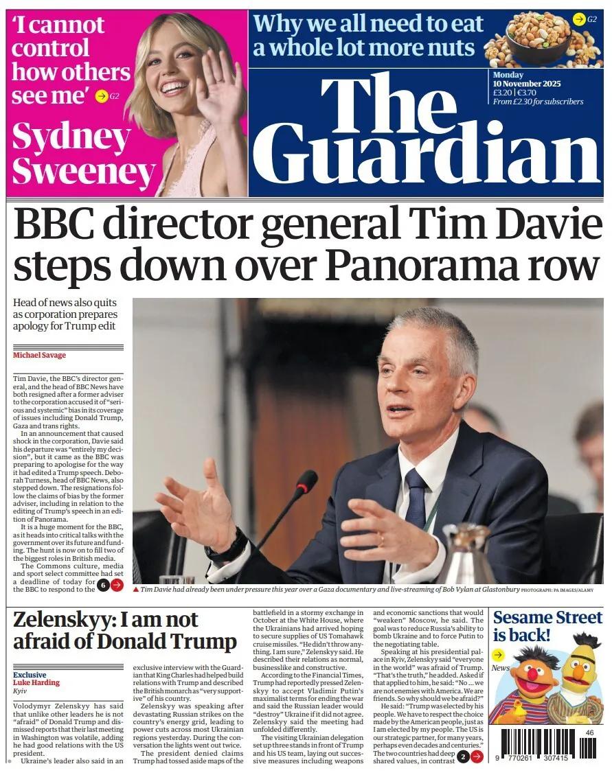 英国广播公司高层领导人蒂姆·戴维和黛博拉·特奈斯的离职震惊了整个公司,《卫报》形容今晚的事件是“BBC(英国广播公司)的重大时刻”。 由于先前在一档栏目中,该电视台新闻节目编造篡改特朗普的讲话内容,这引起美国总统的强烈不满。