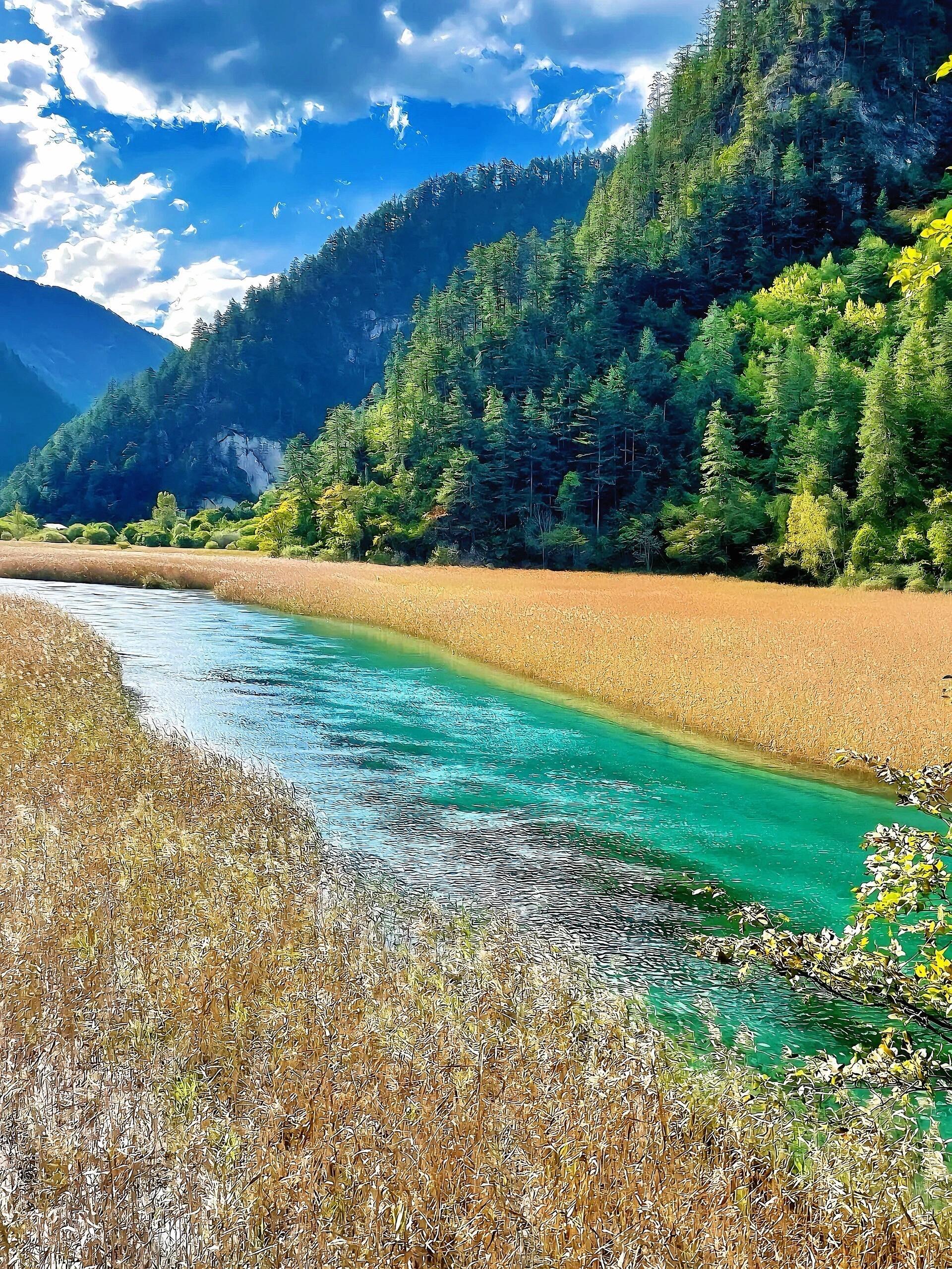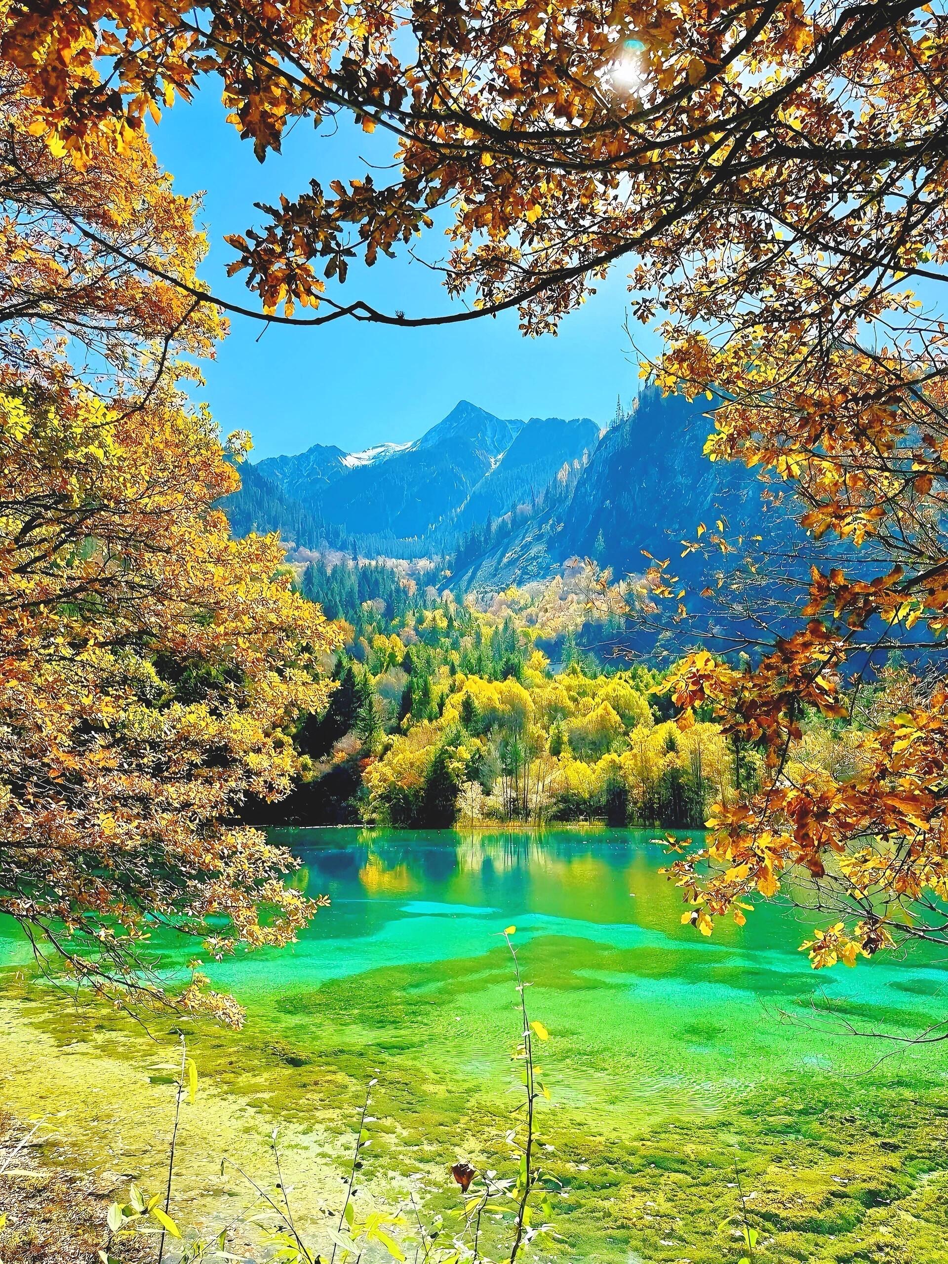 在九寨沟误入莫奈油画世界九寨沟的风光,简直是莫奈油画的现实复刻。海子并非单一色调,而是随着光线流转,在蓝与绿之间切换出万千层次,如同莫奈对睡莲的极致刻画。秋日的山林最为惊艳,橙红、金黄、墨绿的树木错落分布,倒映在澄澈湖水中,色块碰撞又交融。偶有落叶浮于水面,随波轻漾,打破湖面的静谧,像画家随性点下的灵动笔触。置身其中,才懂莫奈的光影美学,原来早被自然藏在了九寨沟的山水间。