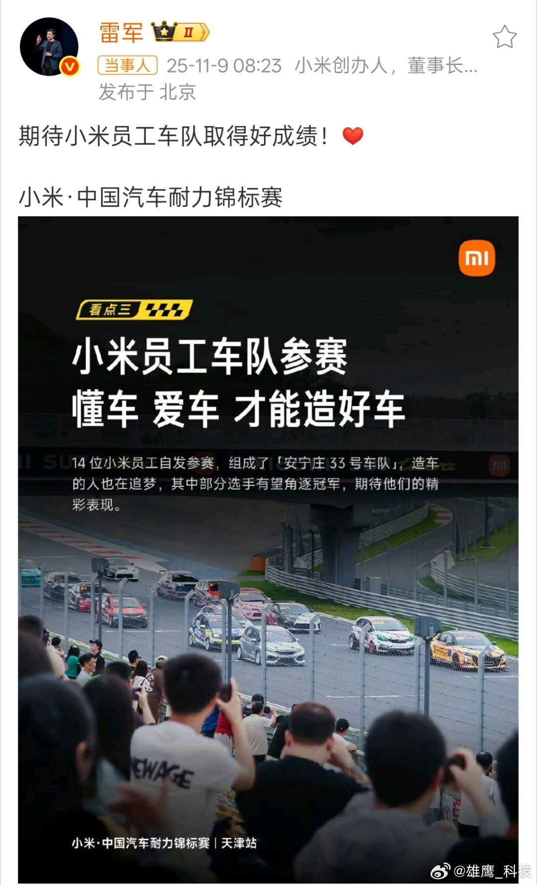 雷军给小米员工车队打call14位小米员工自发参赛,我们不仅要造车,还要追逐梦想
