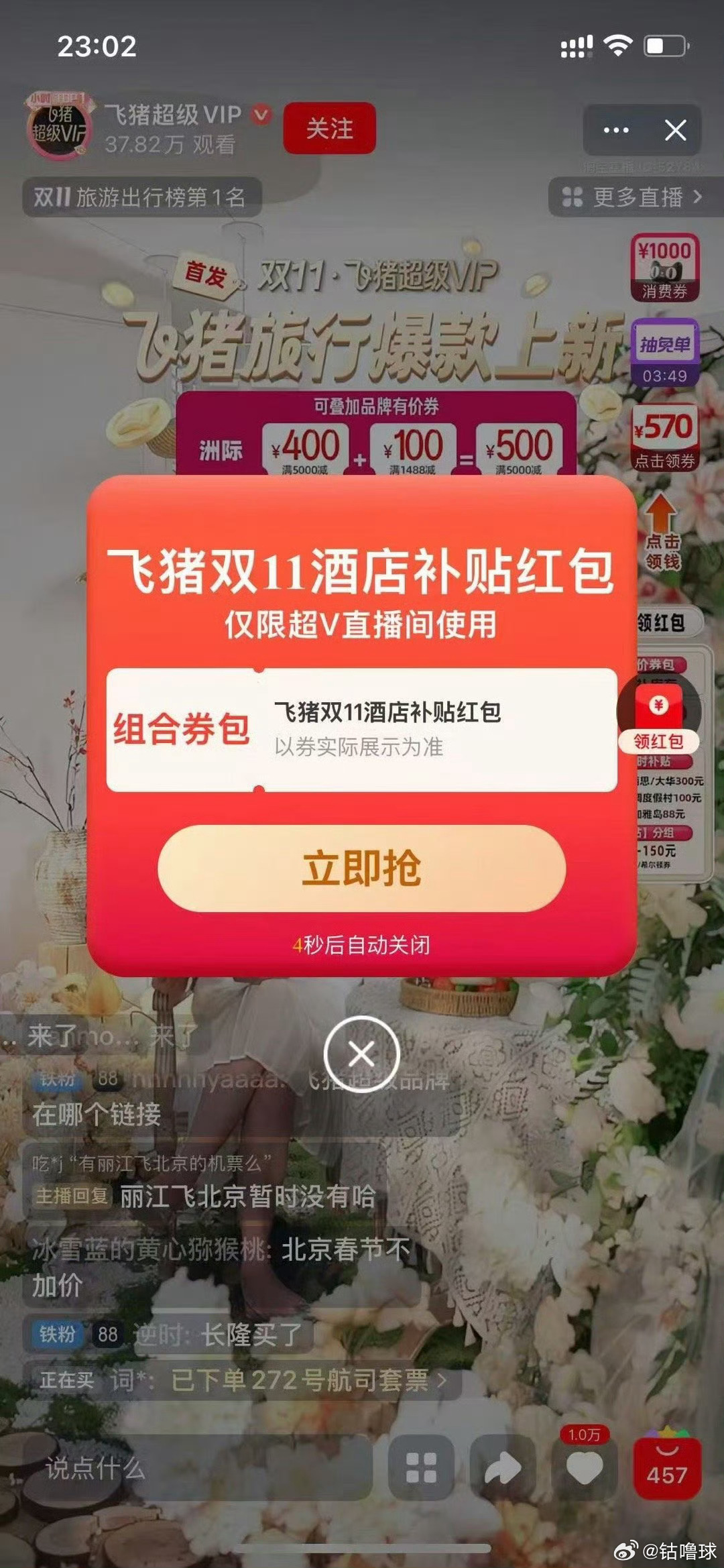 88VIP速冲!飞猪双11专属福利太香了,酒店、旅行套餐都能减,真的就是你想不到的福利。