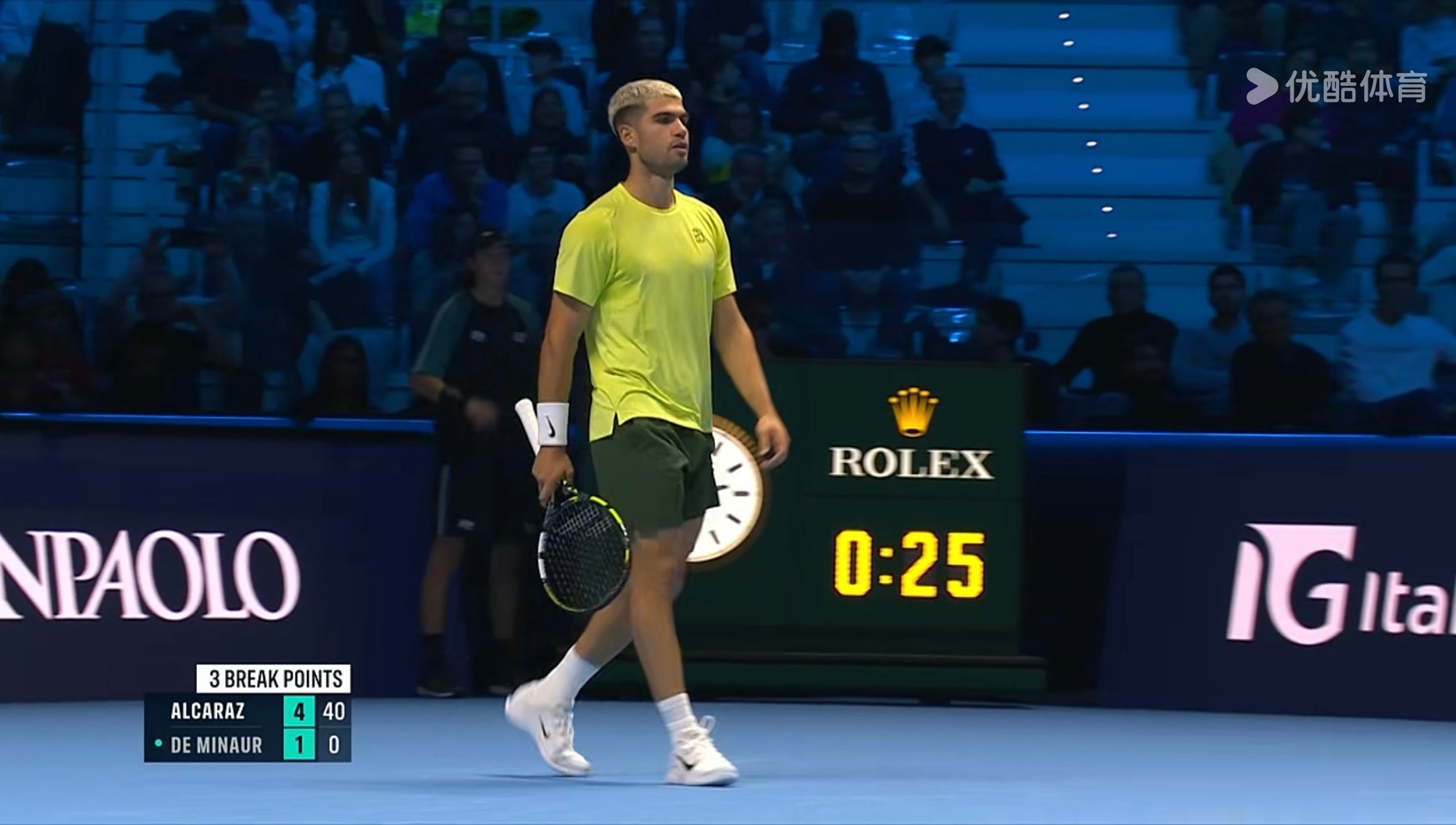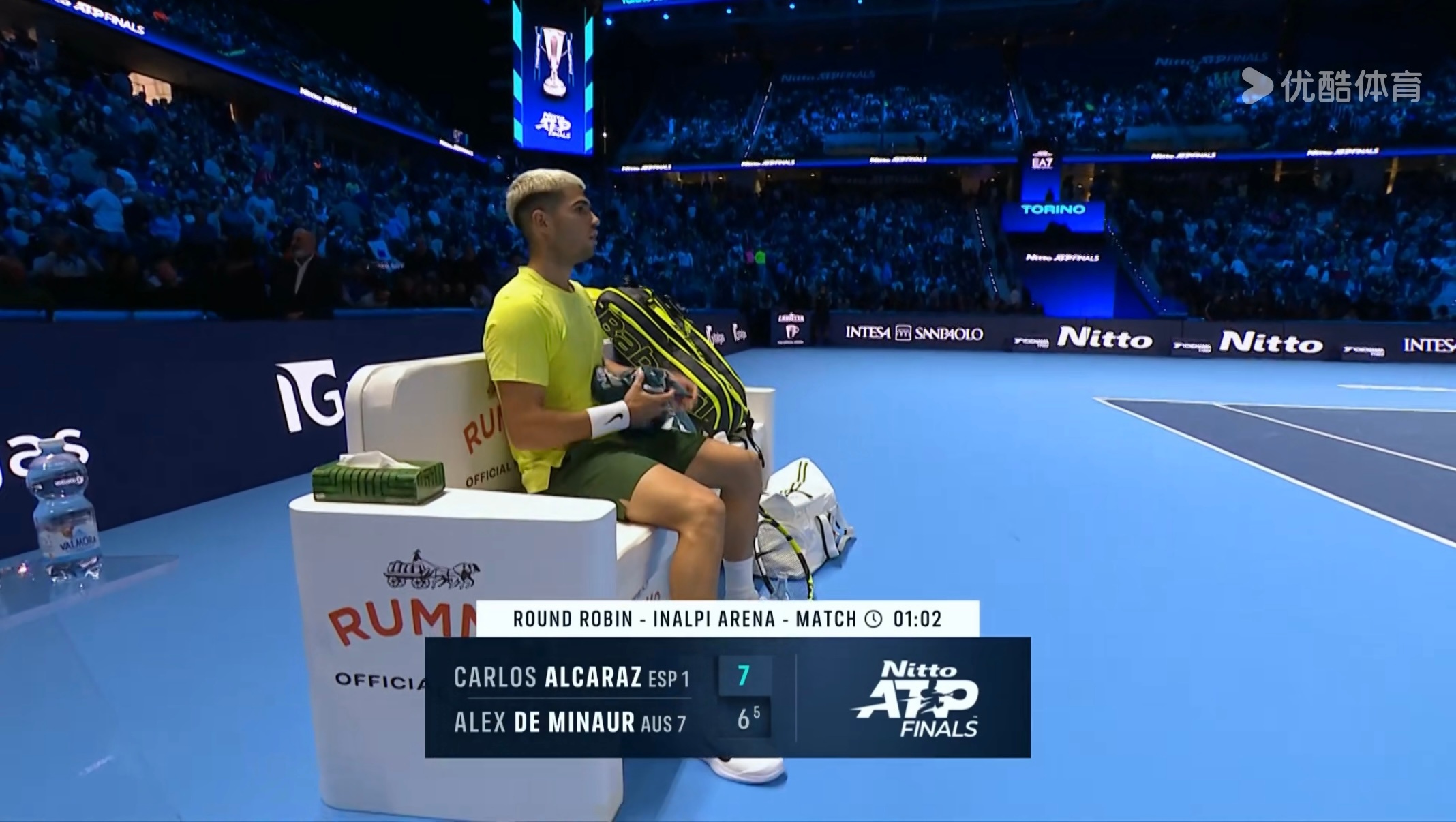 2025赛季ATP年终总决赛单打揭幕战,世界第一阿尔卡拉斯险些错失4-1,40-0的巨大领先优势,抢七大战3-5落后时他突然起势连得4分,最终以7-6(5)惊险先下第一盘,卡子一开始就要玩这么刺激吗[震惊]网球talking大会
