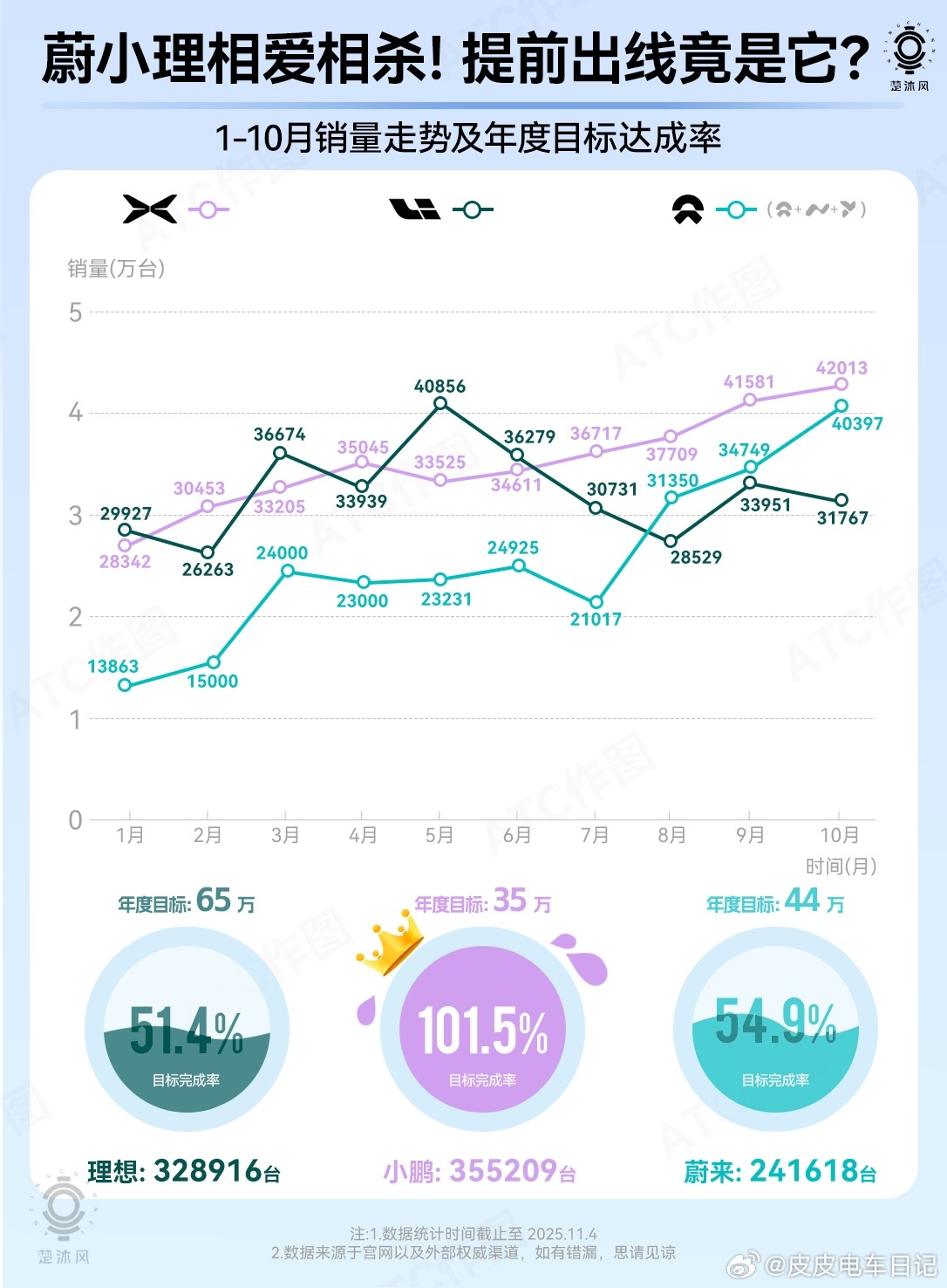❸最不被看好的小鹏,偏偏最为争气,从2万到3万,最新的10月销量已经是连续第二个月销量破4万了,但别急,增程X9正在路上!后续P7+和G6也会安排上!月销量仍有上升空间!