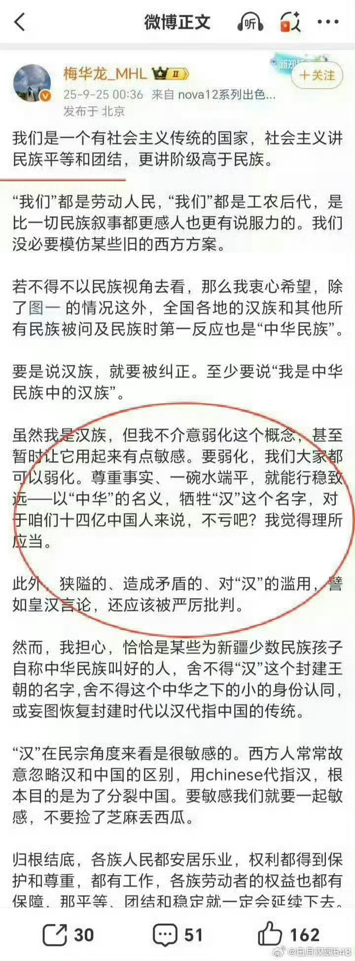 不参与任何其他的议题,我这条微博就是针对他梅华龙的这句话。