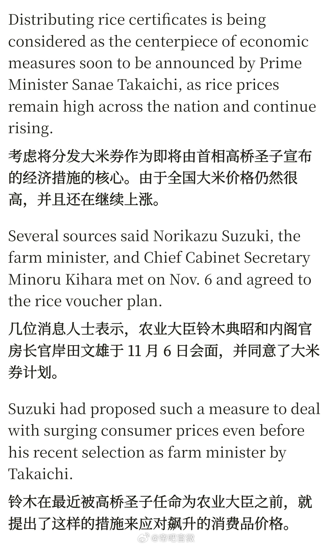 高市内阁考虑发布“日本全国粮票”,以应对持续上涨的大米价格。但新提议出台之际,大