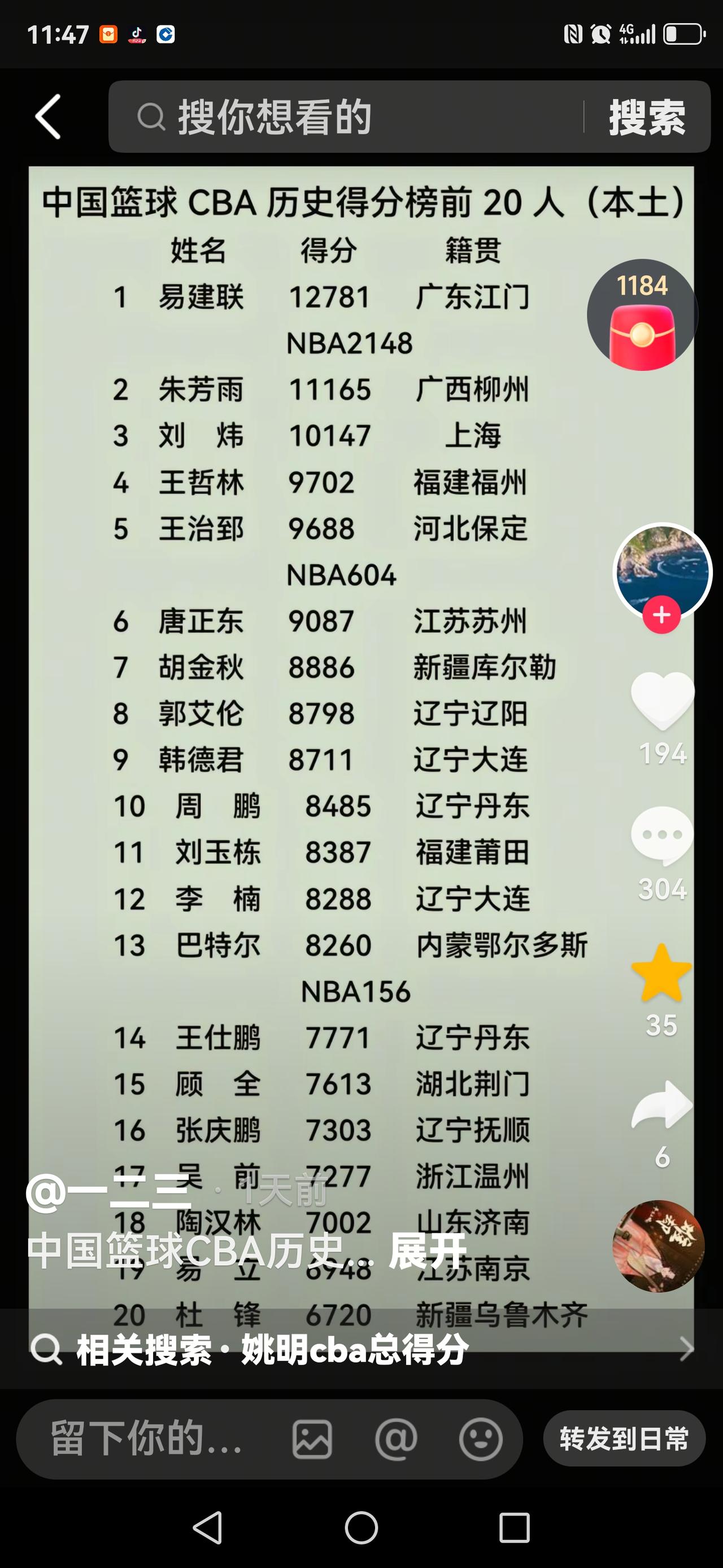 周琦在全运会上有如天神下凡,昨天的比赛中周琦12投11中,狂收18篮板。 周琦在NBA没能站住脚确实可惜了,他的天赋毫无疑问比杨瀚森强! 国内球员最让球迷尊重的就应该是胡金秋了吧,昨天的胡金秋15投13中,稳如老狗。 在cba历史的分排行榜中,胡金秋排在第七位,从年龄上看现役球员中最有可能冲进得分榜前三的就应该是胡金秋了。 目前cba得分王是易建联,你觉得未来谁能超越易建联呢?