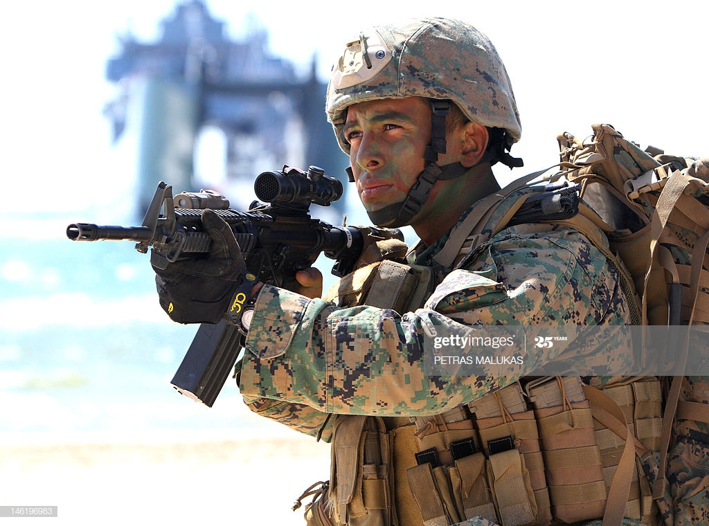 🔻图1:2010 年代时期,印度尼西亚海军突击队员使用配备 100 发 SureFire 弹匣的 HK416 步枪