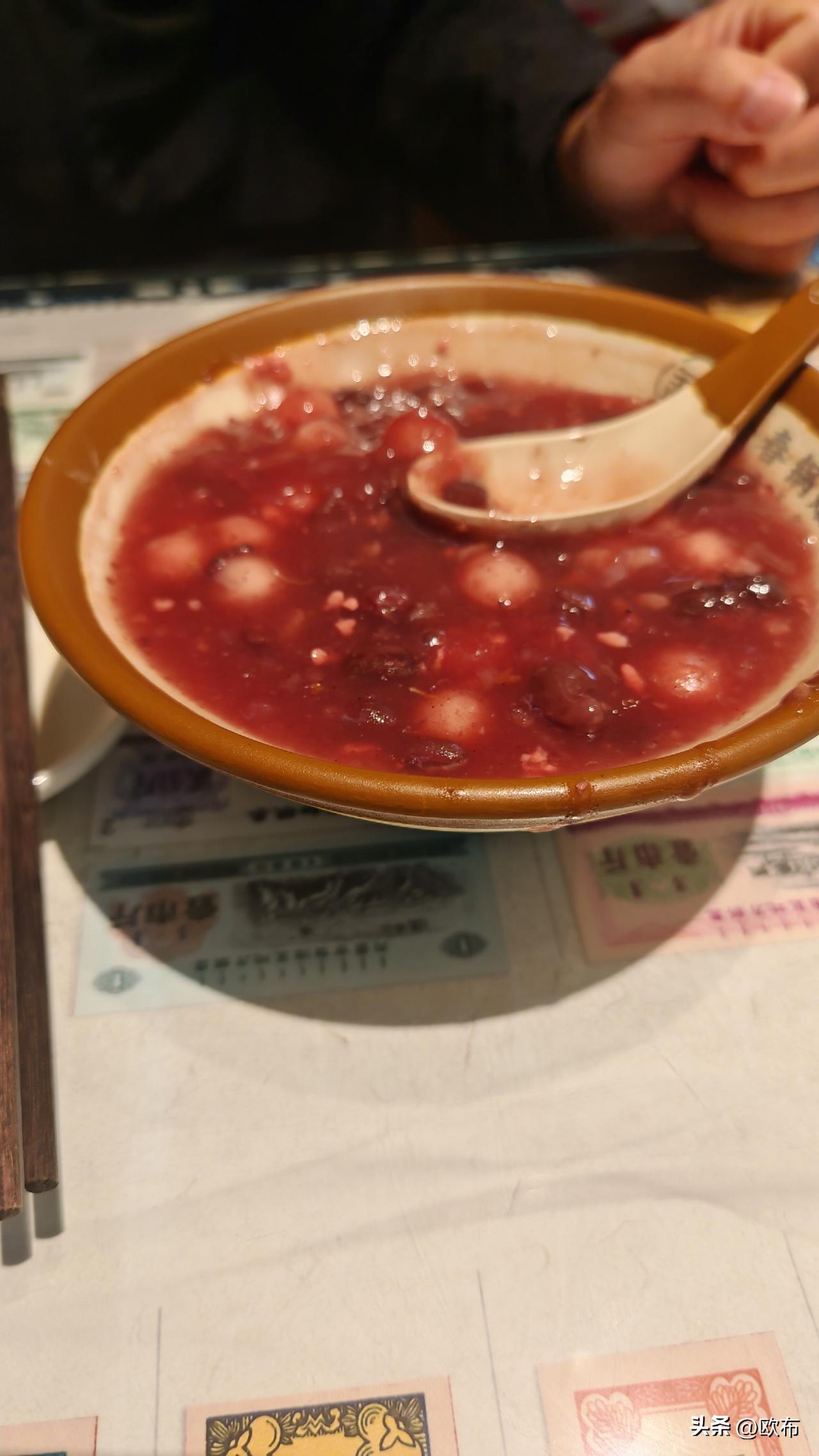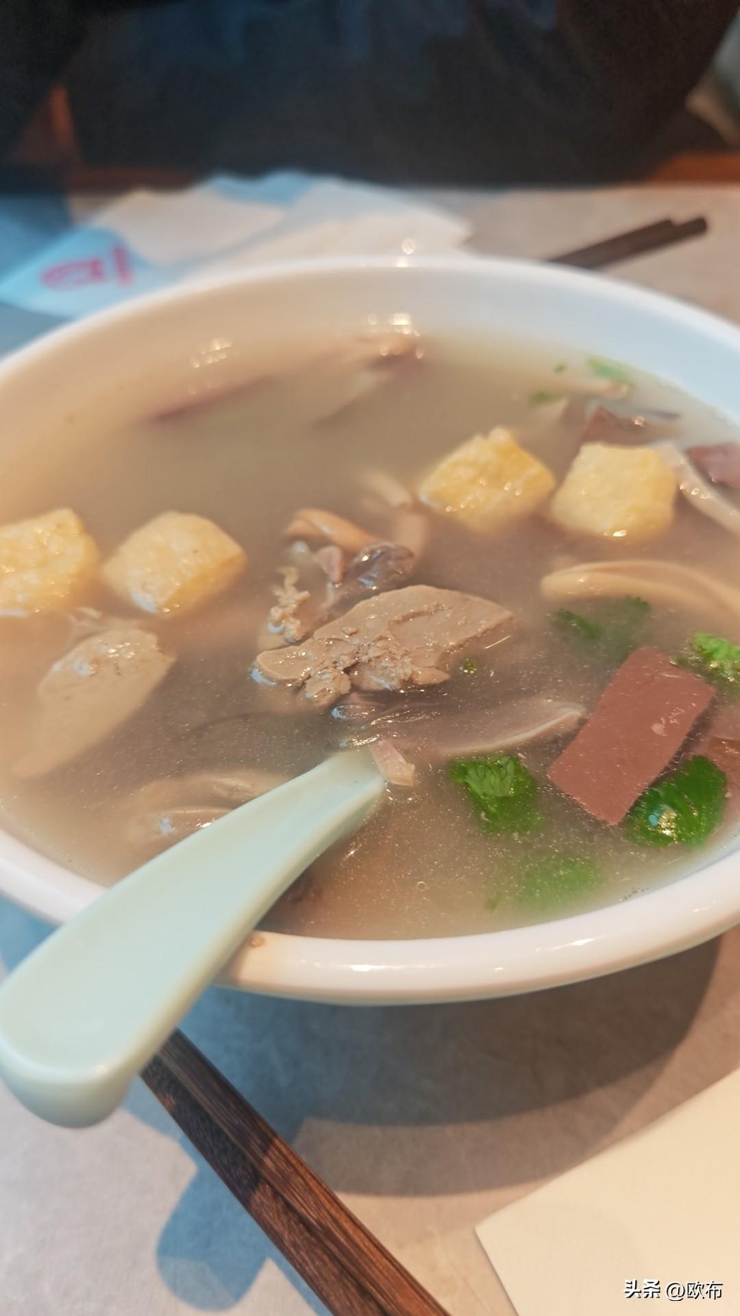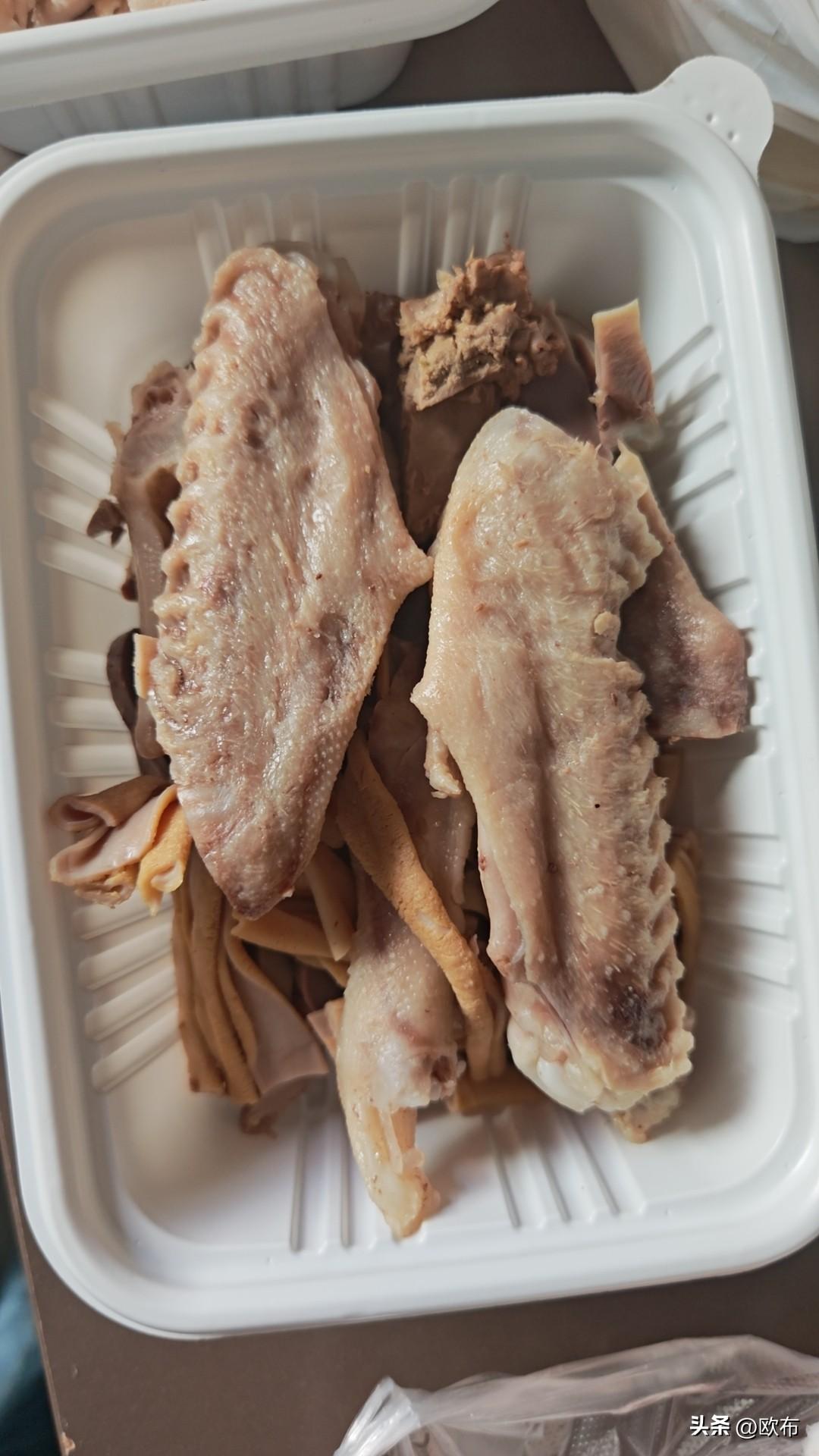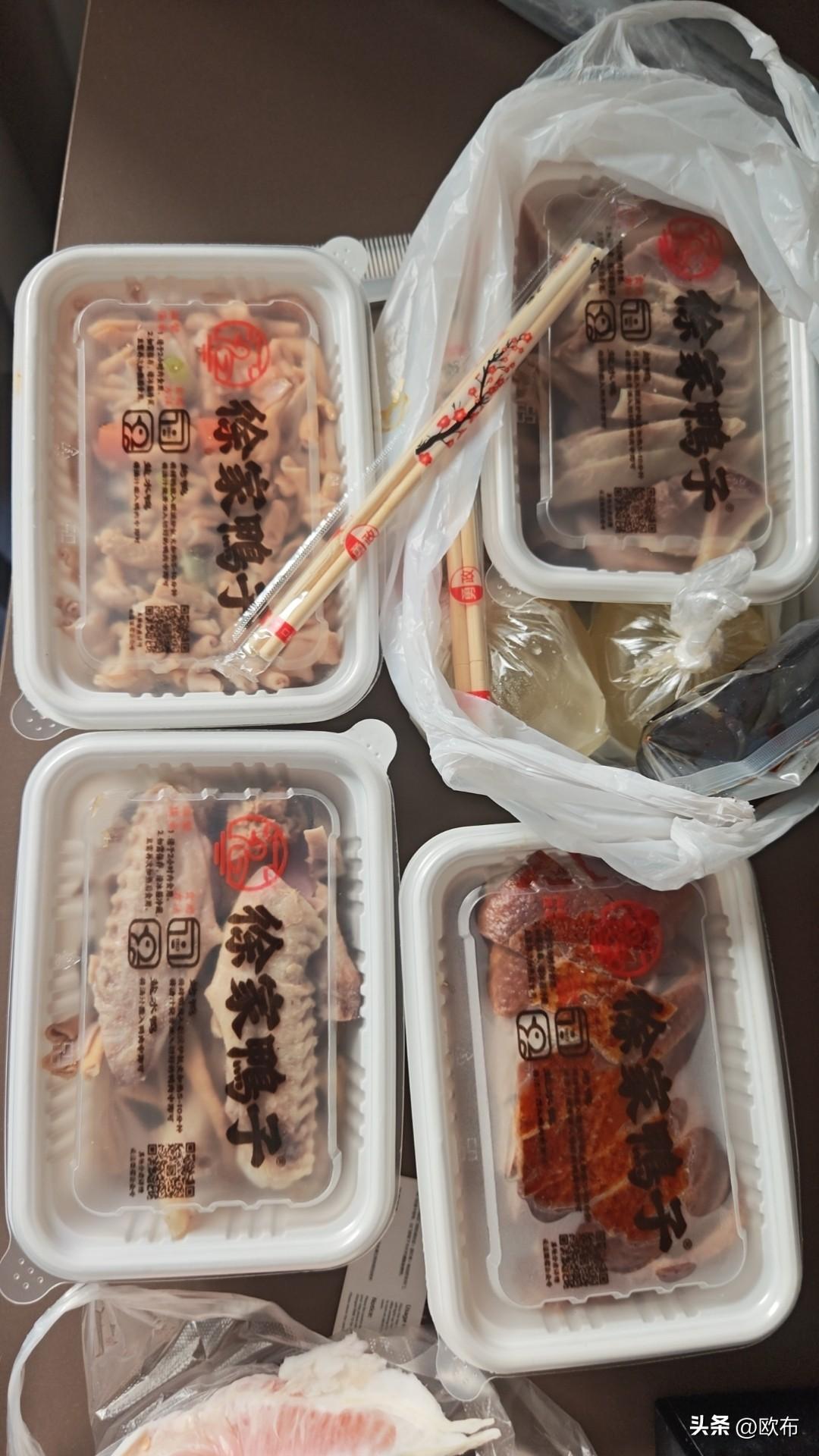 走了好几条街,才在居民区里找到一家本地人排队的早餐,二十二块钱,感觉还不贵。那个黑米团子里包的竟然是炸酥的油条,味道香咸。这几种吃食我一个都叫不出名字。那两碗喝的东西好像是葛粉煮的毛芋头和小汤圆,挺甜。米糕热的很好吃,口感和桂花糕类似,反正都是甜的。 一直找到十点,才找到一家本地人推荐的烤鸭店,本地大家特别推荐鸭肠,凉拌的,她说特别好吃。并且只有早上才有,卖的非常快。她又推荐鸭全件,说也特别好吃。一套鸭全件才二十块钱。我全听她的,买了盐水鸭和烤鸭,回酒店尝了尝,非常好吃。大姐没骗我。 买鸭子时旁边还有一位大哥也在买鸭子,他也说这家鸭子最好吃,里面菜市场有一家也好吃,我也去看了,那家卫生不如这家。 鸭血汤,梅花糕,红豆粥都吃了,都还可以。