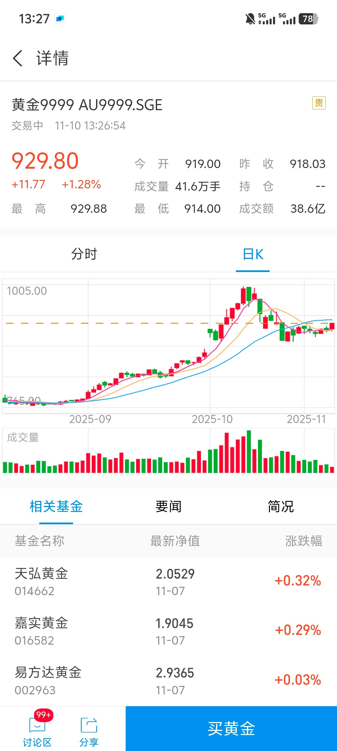金价 如果你有100W只能投资一项,五年后看收益,你会现在买黄金还是买茅台股票?还是投资别的?[思考][疑问]