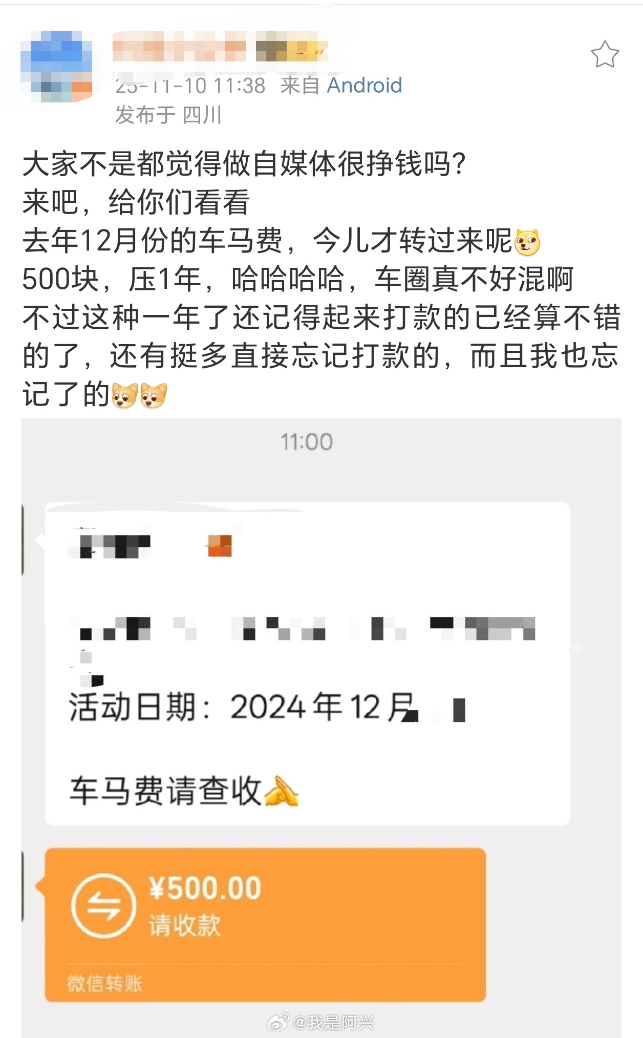 说搞自媒体不挣钱,我是不相信的。车马费说实话也就当个零花钱看待,给了更好,不给也没多大损失。搞自媒体的大头在商业化的商单和广告投放,这才是真正赚钱的部分。如果不挣钱,那些博主怎么可能买车跟买菜一样?手机先不说了,很多都是品牌置换的,但车就不一样了,你看那些大V,哪个不是人手几辆车?