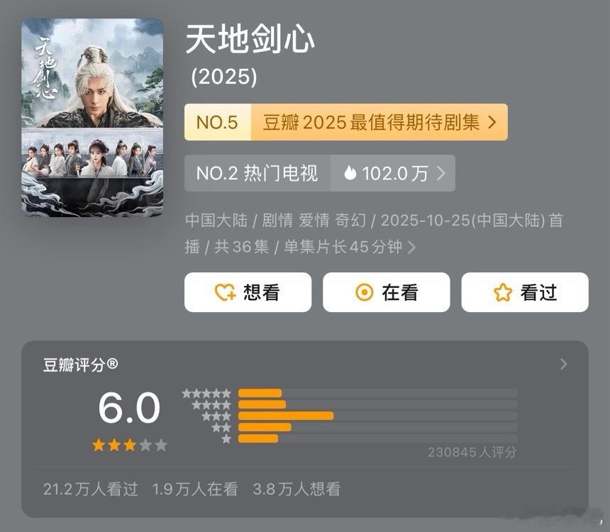 天地剑心大结局天地剑心超点大结局创下热度新低,评级从开拍S+,到播出S,现在趋