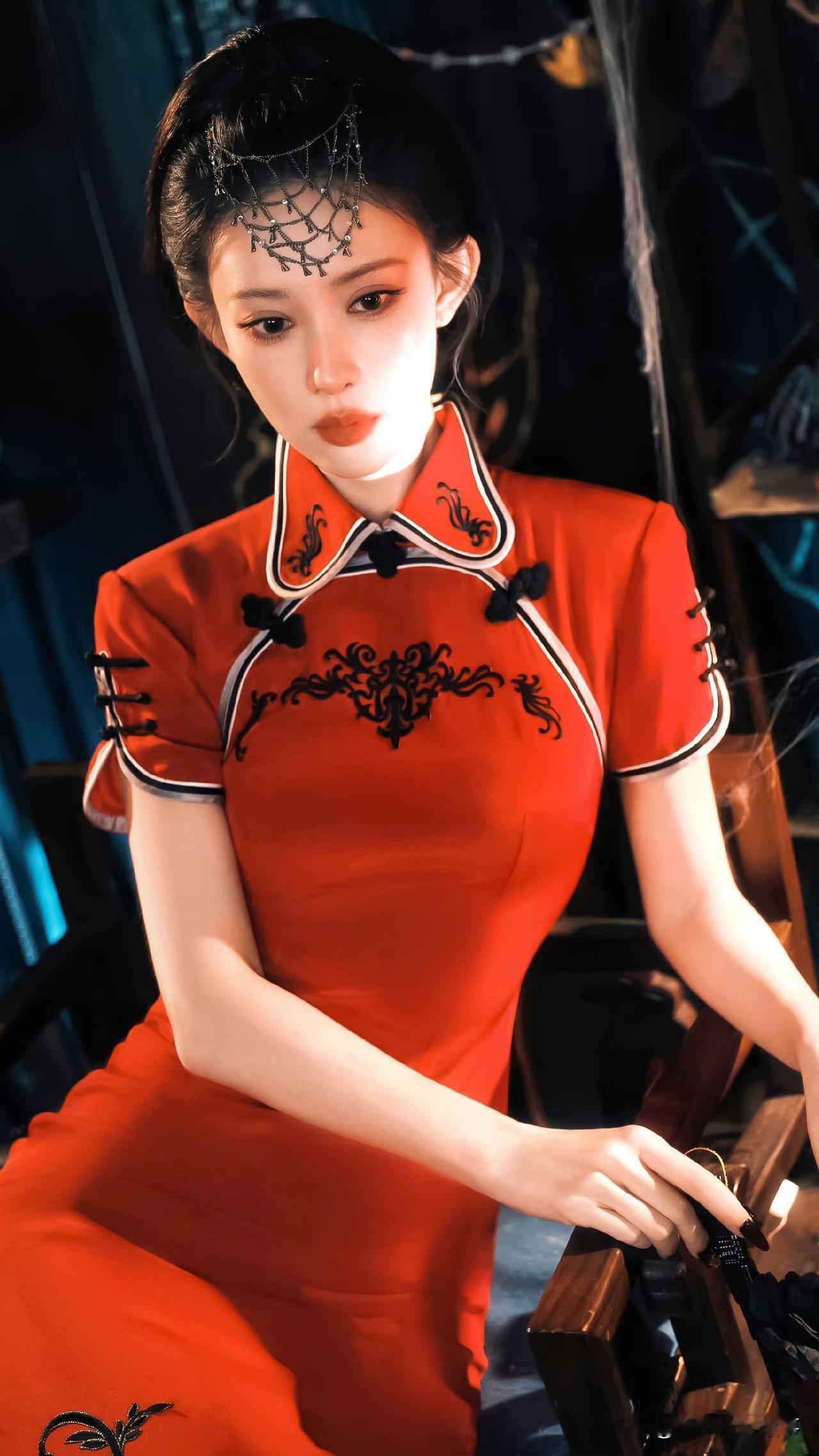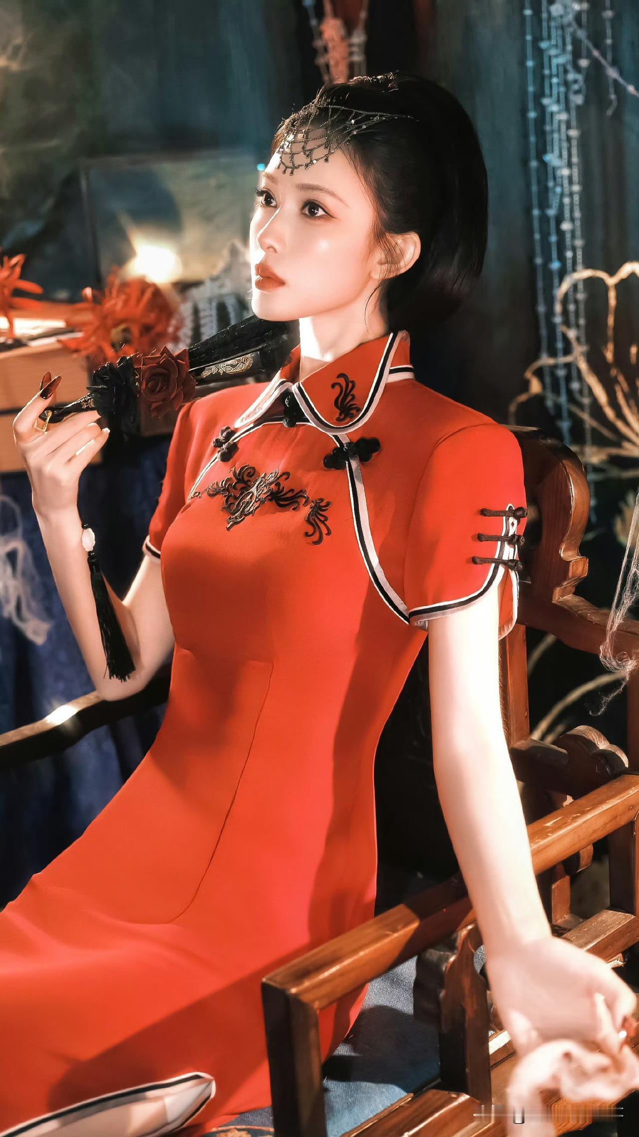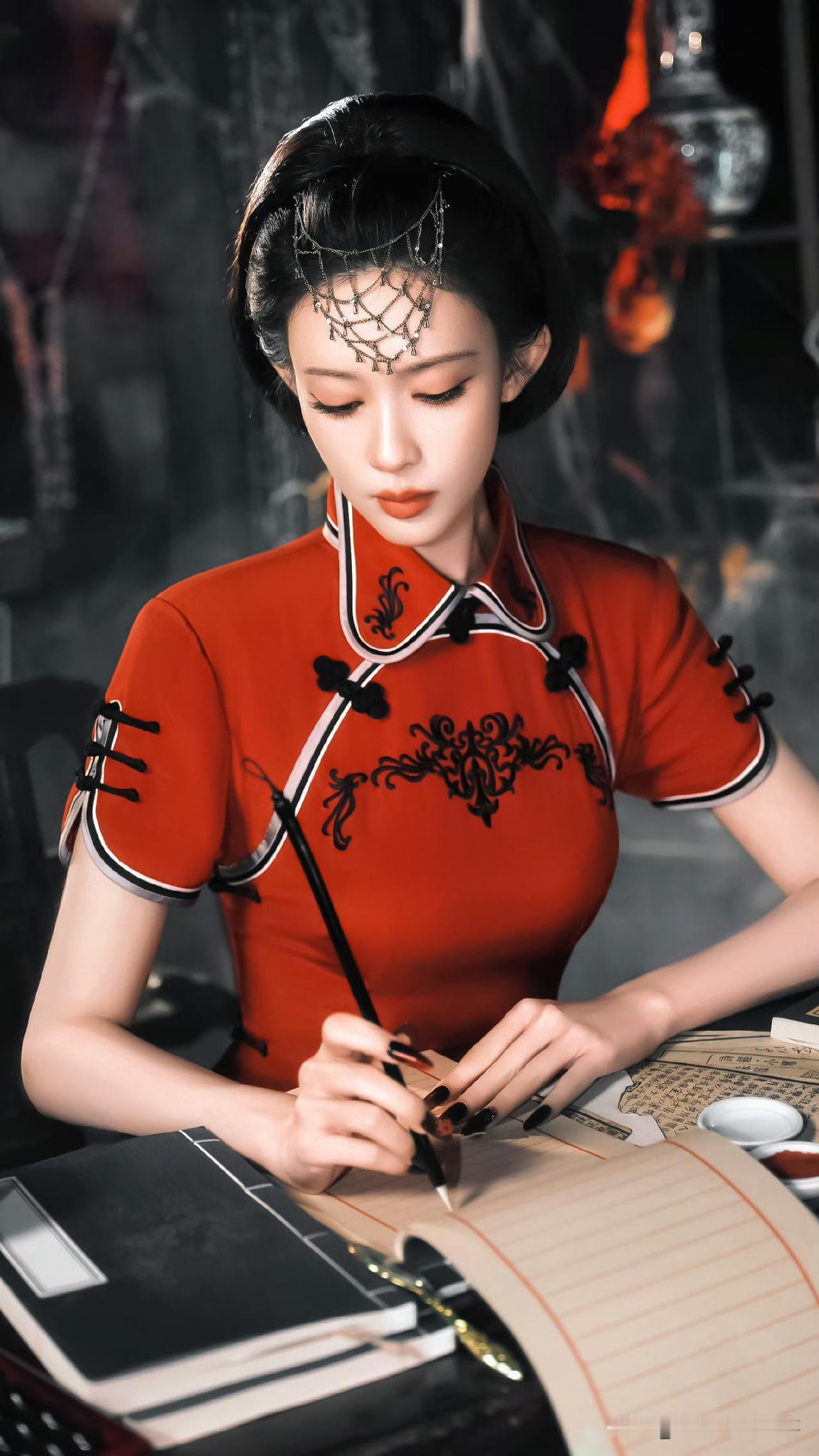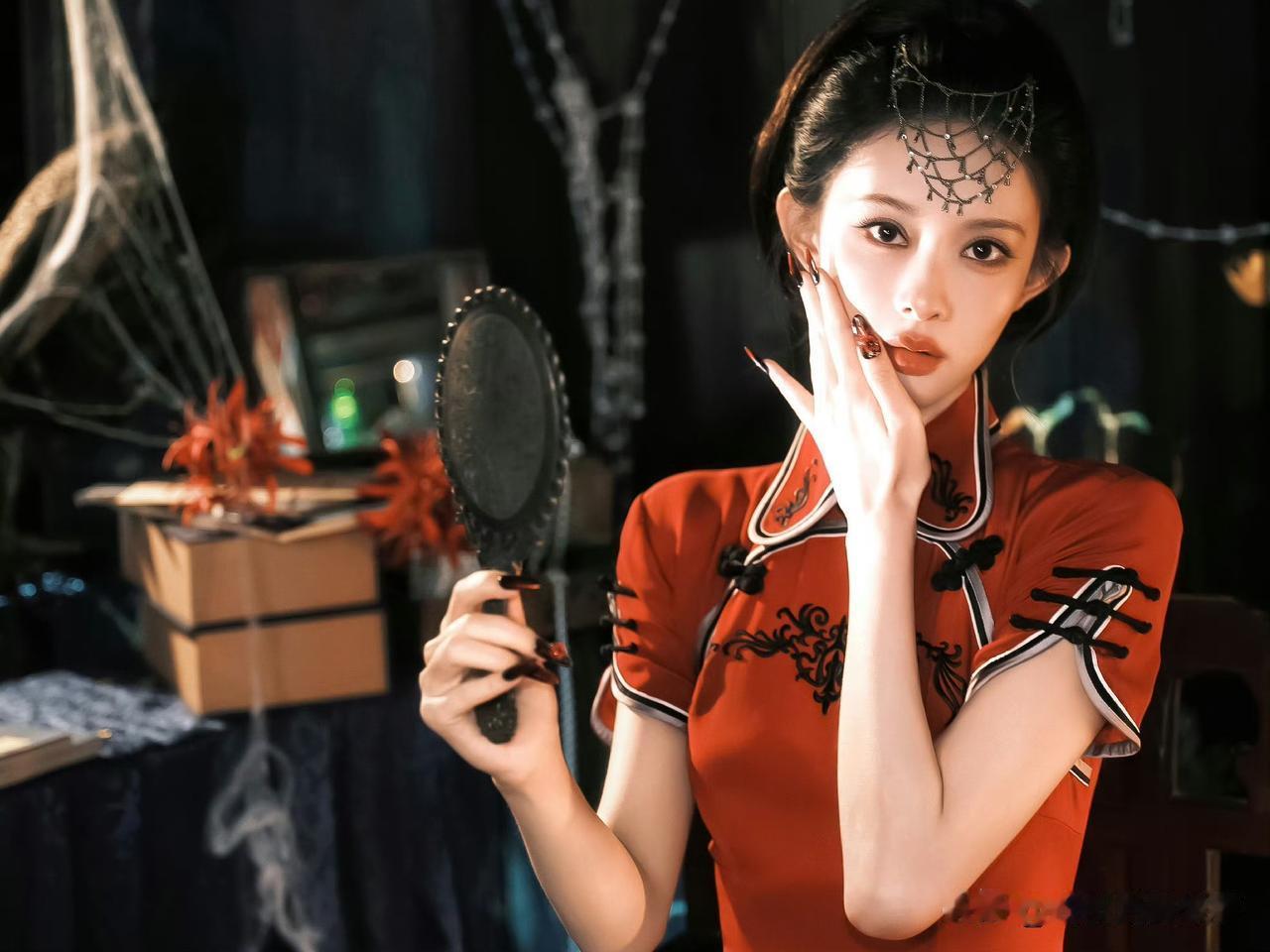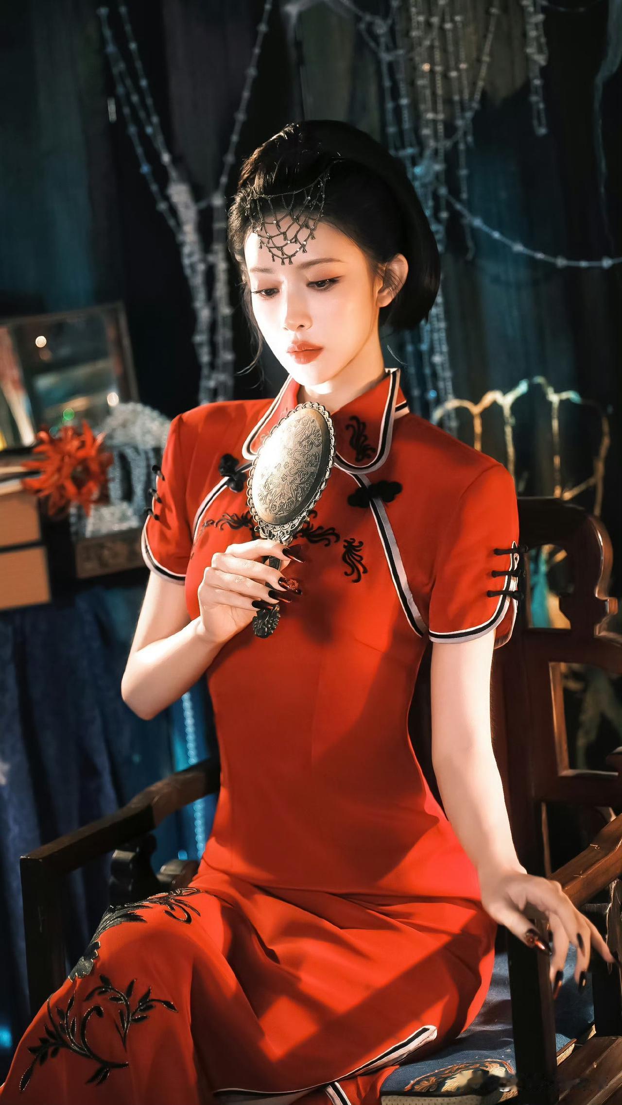 孟子义这组旗袍杀,是从旧时光里走出来的画中仙吧 “月下惊鸿影,疑是画中仙”说的就是她!正红旗袍衬得肤白胜雪,黑纹绣边添了冷艳,银网发饰又裹着朦胧的柔,抬眸是勾人的风情,执扇时是藏不住的韵。 或提笔落字,或对镜凝眸,每帧都像老上海画报里走出来的美人——复古又惊艳,媚而不俗,这哪是生图,明明是把“风情万种”四个字穿在了身上! 孟子义 旗袍造型