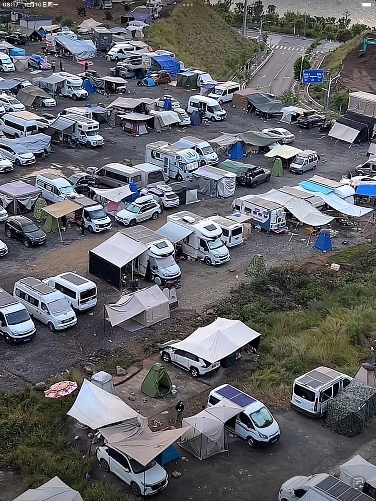 这是云南昭通的一个自驾游露营基地,里面密密麻麻都是车。住在这种环境里,不知道感觉怎么样。他们上厕所怎么办?吃饭怎么办?