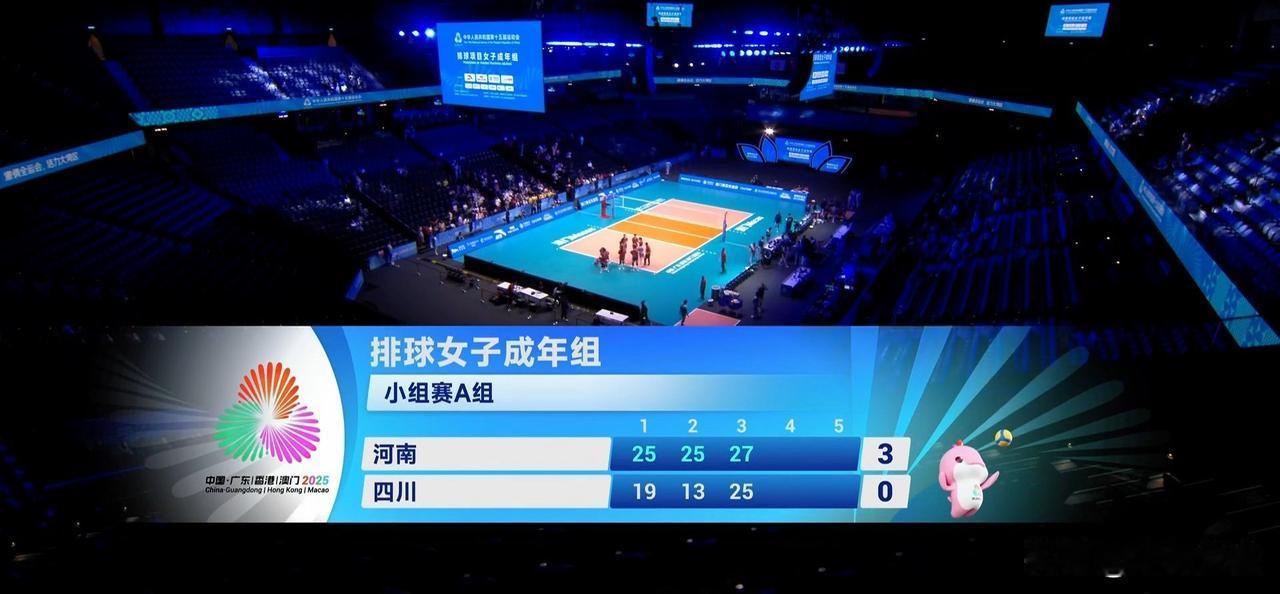 河南女排三连胜锁定小组赛出线权!!!十五运女排小组赛A组,河南女排在朱婷的带领下,轻取四川女排,小组赛三连胜提前获得小组出线权。首局四川女排在开局稍有抵抗后,河南女排逐渐建立比分优势,以25:19拿下首局。次局双方纠缠到9分左右后,河南女排一波攻击流打晕四川女排,河南女排以25:13轻松拿下。第三局四川女排给河南队足够压力,一度拿到局点,好在河南姑娘们顶住了压力。随着朱婷拦网得手。河南女排27:25拿下第三局。大比分3:0取得胜利。一波三连胜提前取得小组出线权!!!