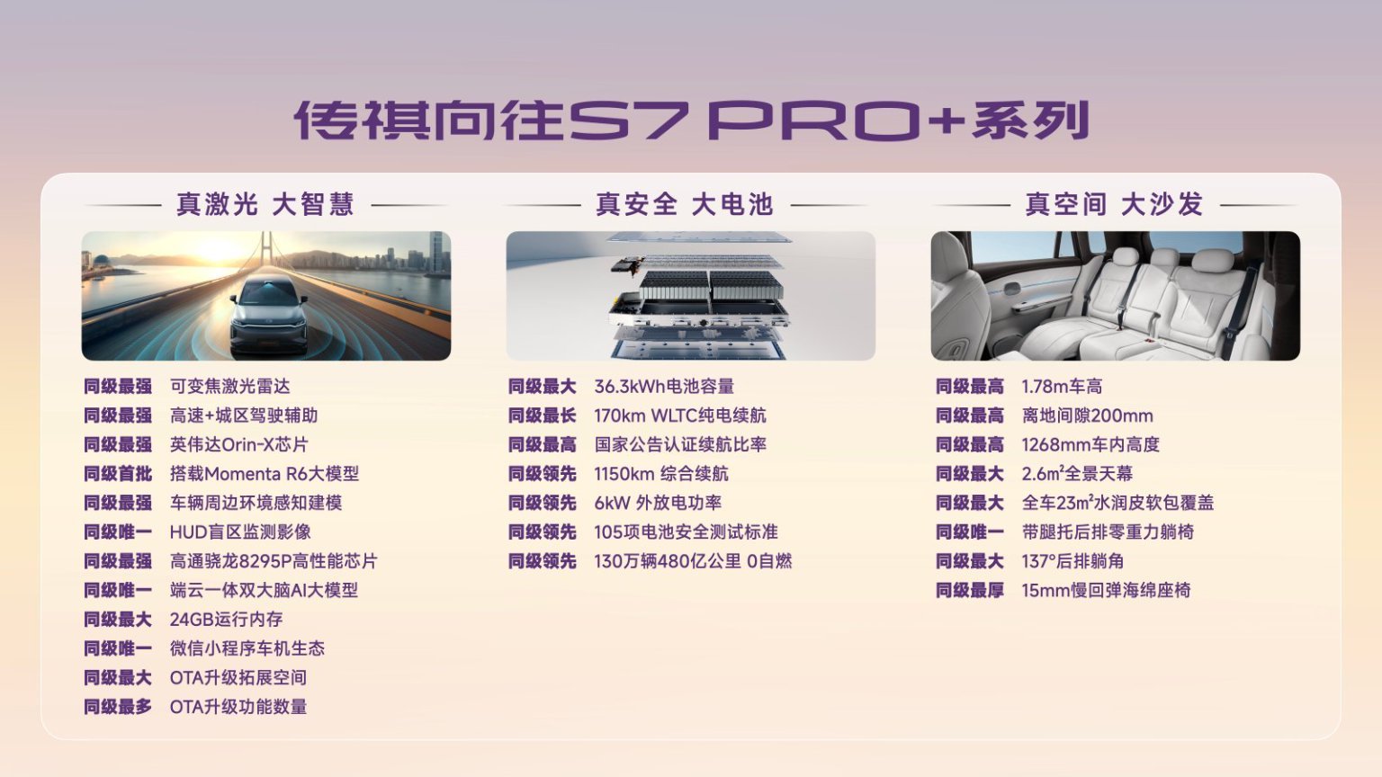 传祺向往S7增加Pro+版后,成了17万级插混SUV智能王。17.98万的价格,有激光雷达辅助驾驶、舒适大空间和扎实的续航。其实就是花合理的钱,升级全家体验。再加上现在5年10万免息政策,月供只要1666元,把精打细算落到位了。