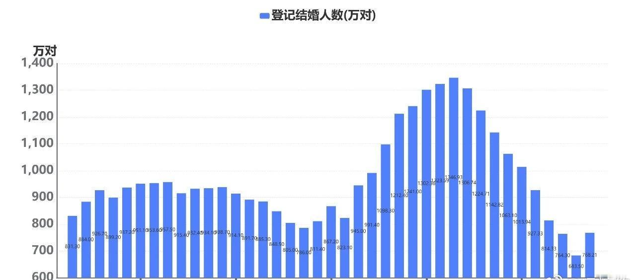 今年前三季度结婚登记515万对,高于2024年同期475万对,多了8%,但低于2023年同期569万对,少了9%。 另外,前三季度离婚登记208万对。