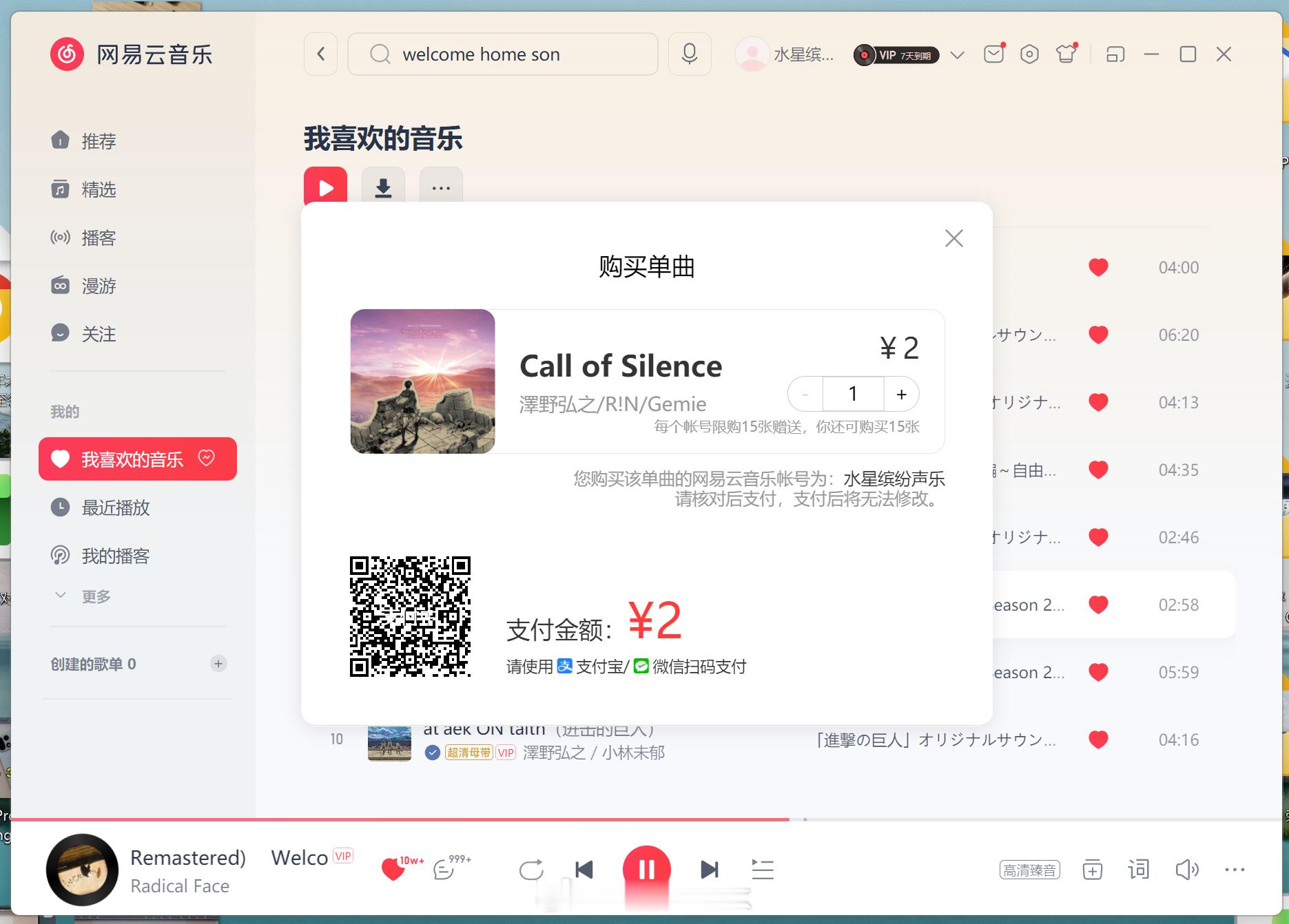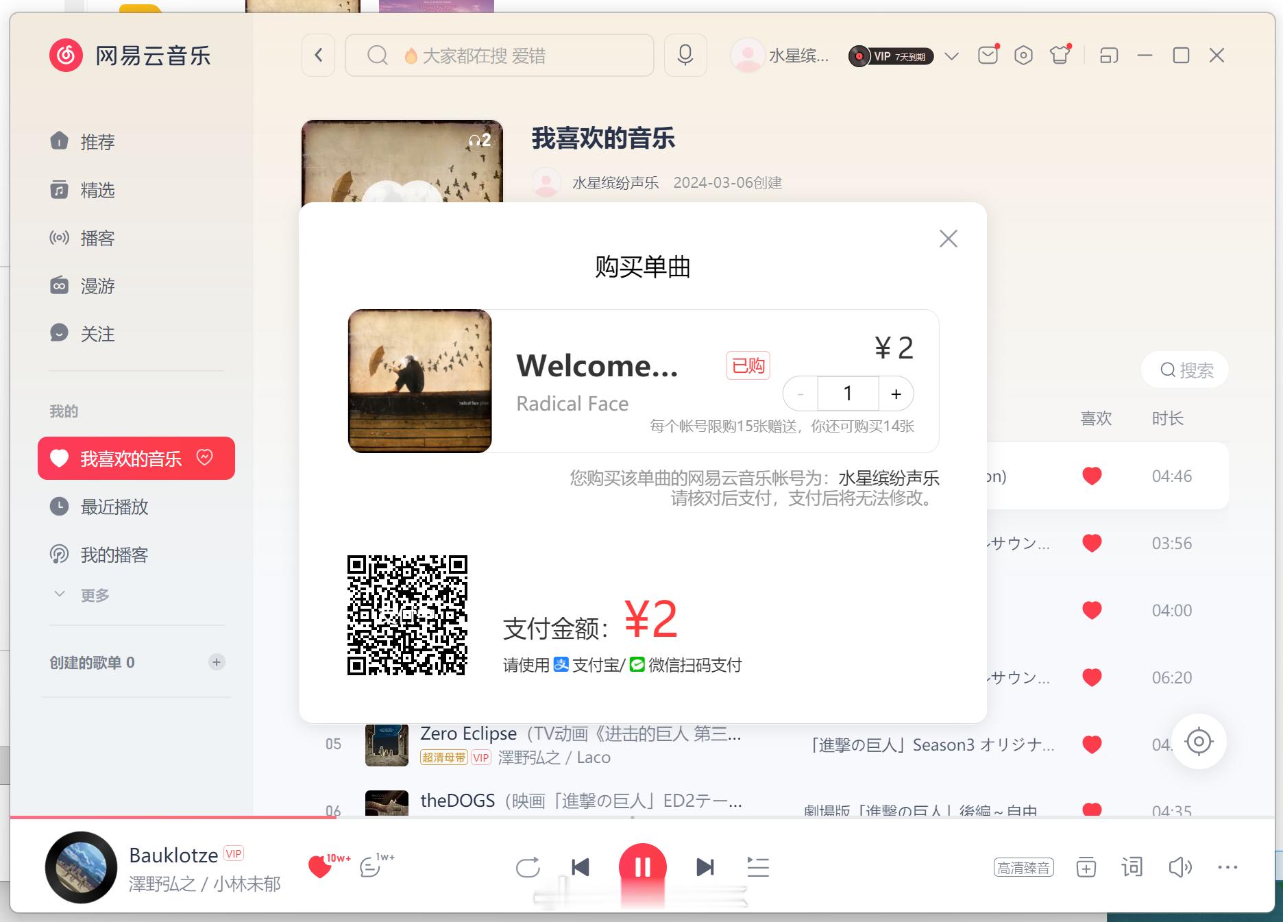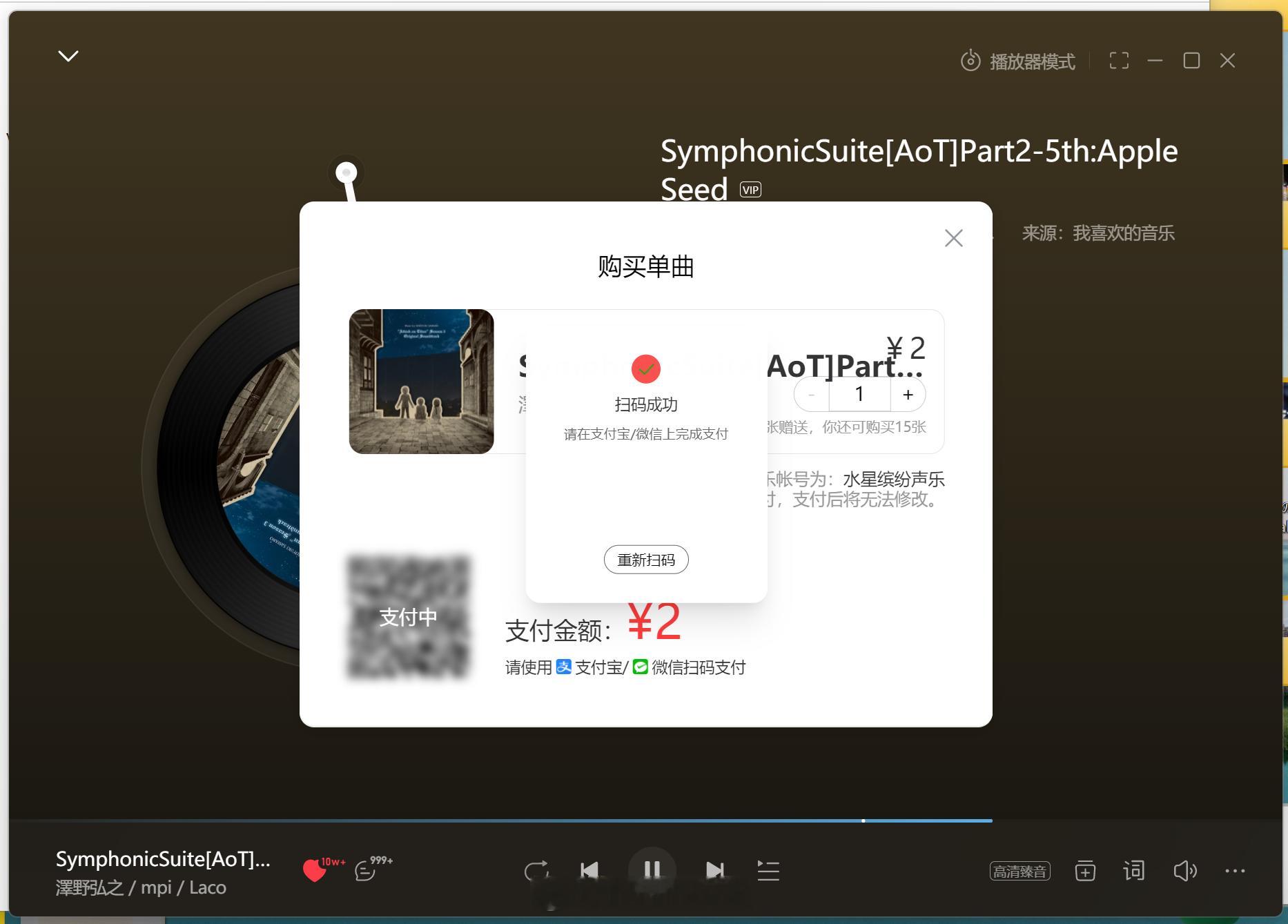 正准备骂网易云音乐,我开了会员,下载的歌曲还是私有格式,不能用,结果官方提示可以购买单曲,就是公有格式了,一首歌两块钱,这点挺好[二哈][二哈][二哈]