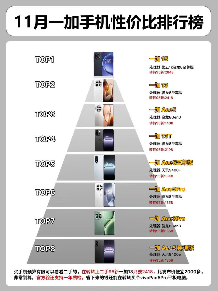 11月一加手机性价比排行榜。一加15一加13 一加ac5一加13T数码科技 手机手机推荐一加ace5pro一加ace5至尊版
