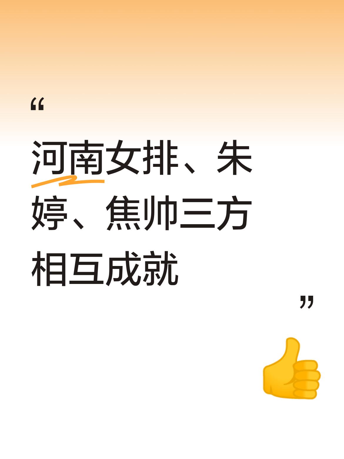 相互成就,河南女排为朱婷提供平台,朱婷助力队伍,焦帅与朱婷配合默契,三方彼此成就