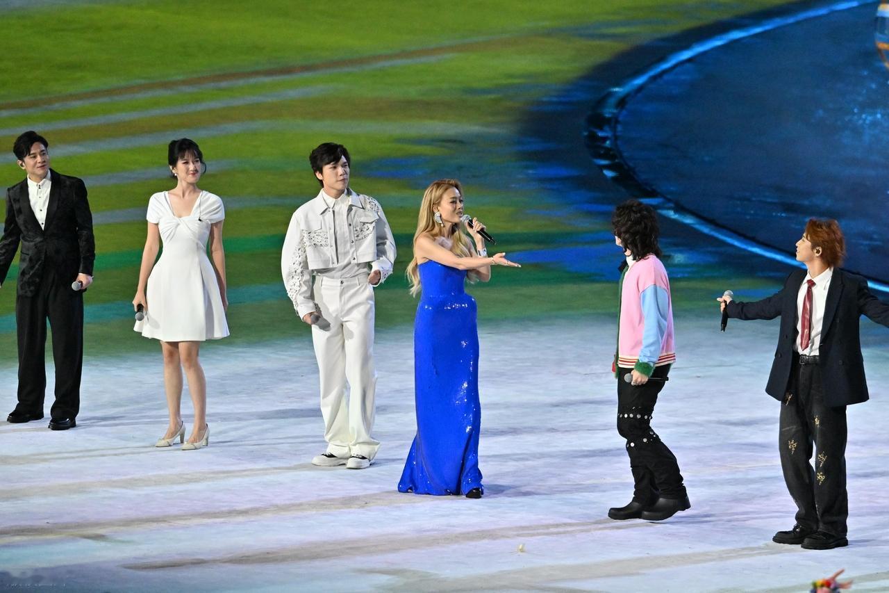 最近容祖儿和曾比特一起献唱,两位站在一起很有姐弟范儿,也都搭配的很年轻。 容祖儿的身材保持的很不错,看起来格外的显年轻,气质超好,确实是很有吸引力。 她这回搭配了一件蓝色的乳胶裙,穿上这件裙子之后能够让她秀出苗条的细腰,确实是太漂亮了。 容祖儿这回大秀香肩,尽显高雅之美,还有种活力气息。 她留着金色的大波浪卷长发,同时戴着奢华的耳坠,带给人高贵之美。 曾比特上身穿拼色风格的针织衫,下身搭配黑色裤子,看起来像个帅气的文艺男青年。
