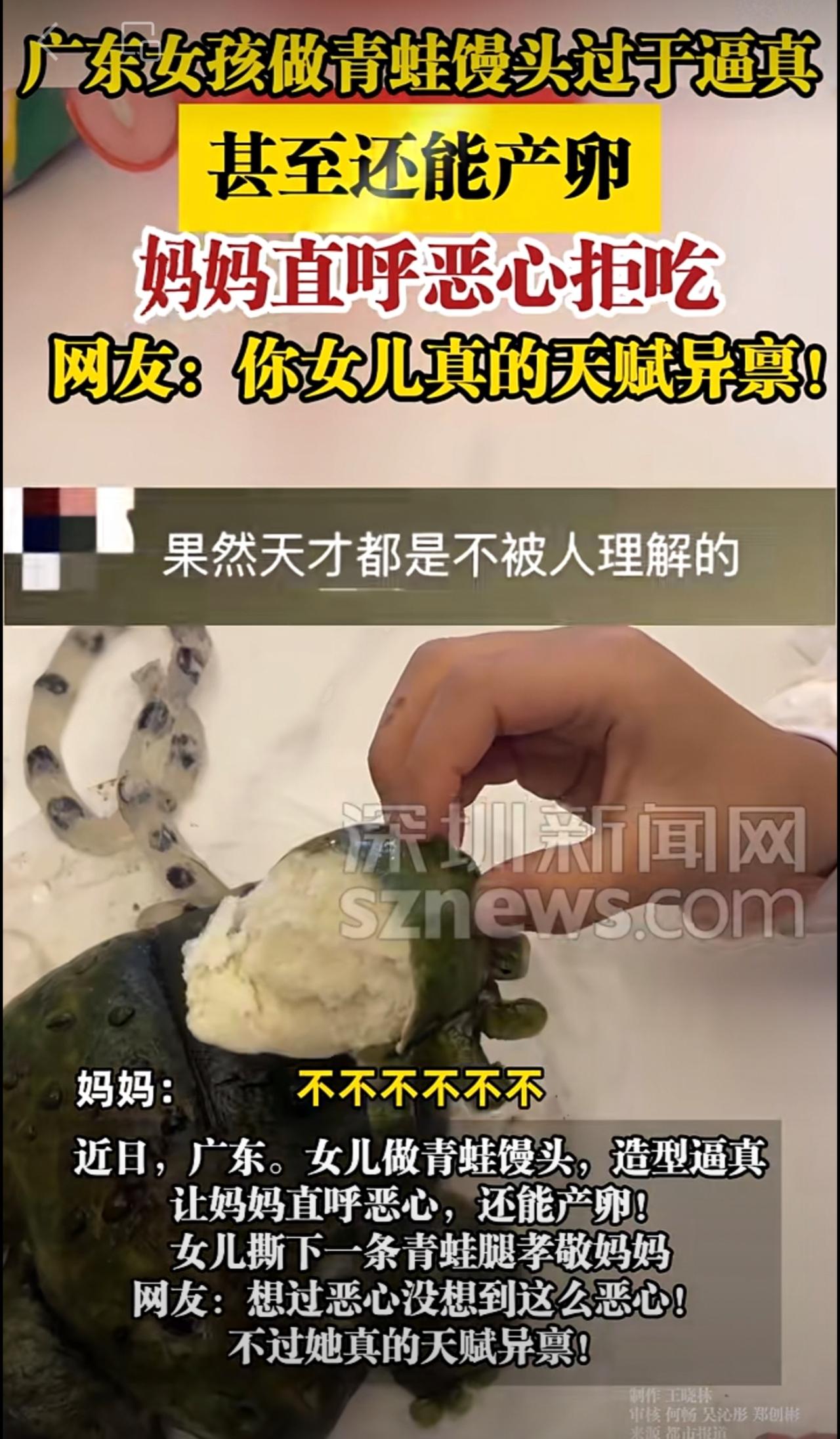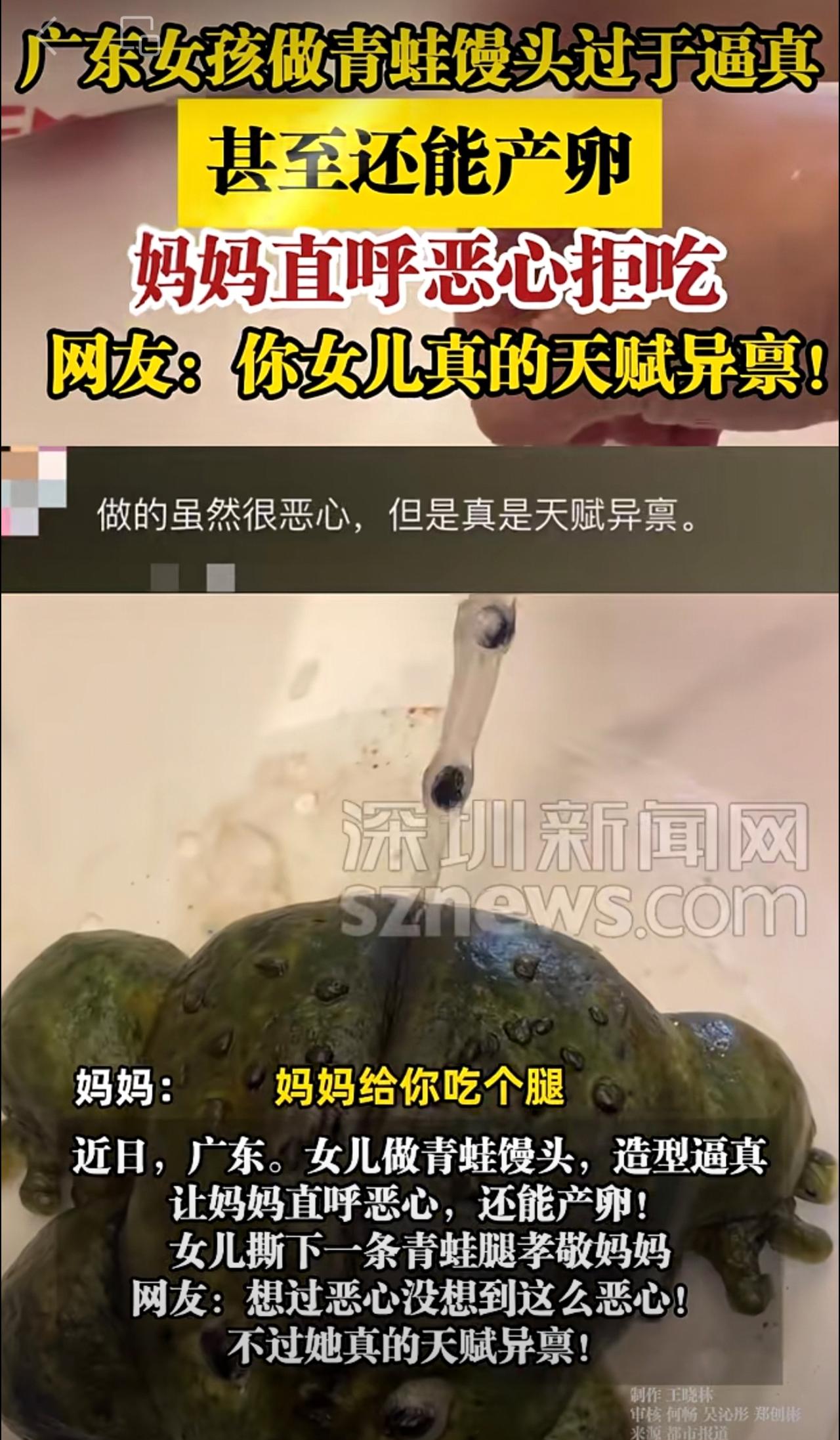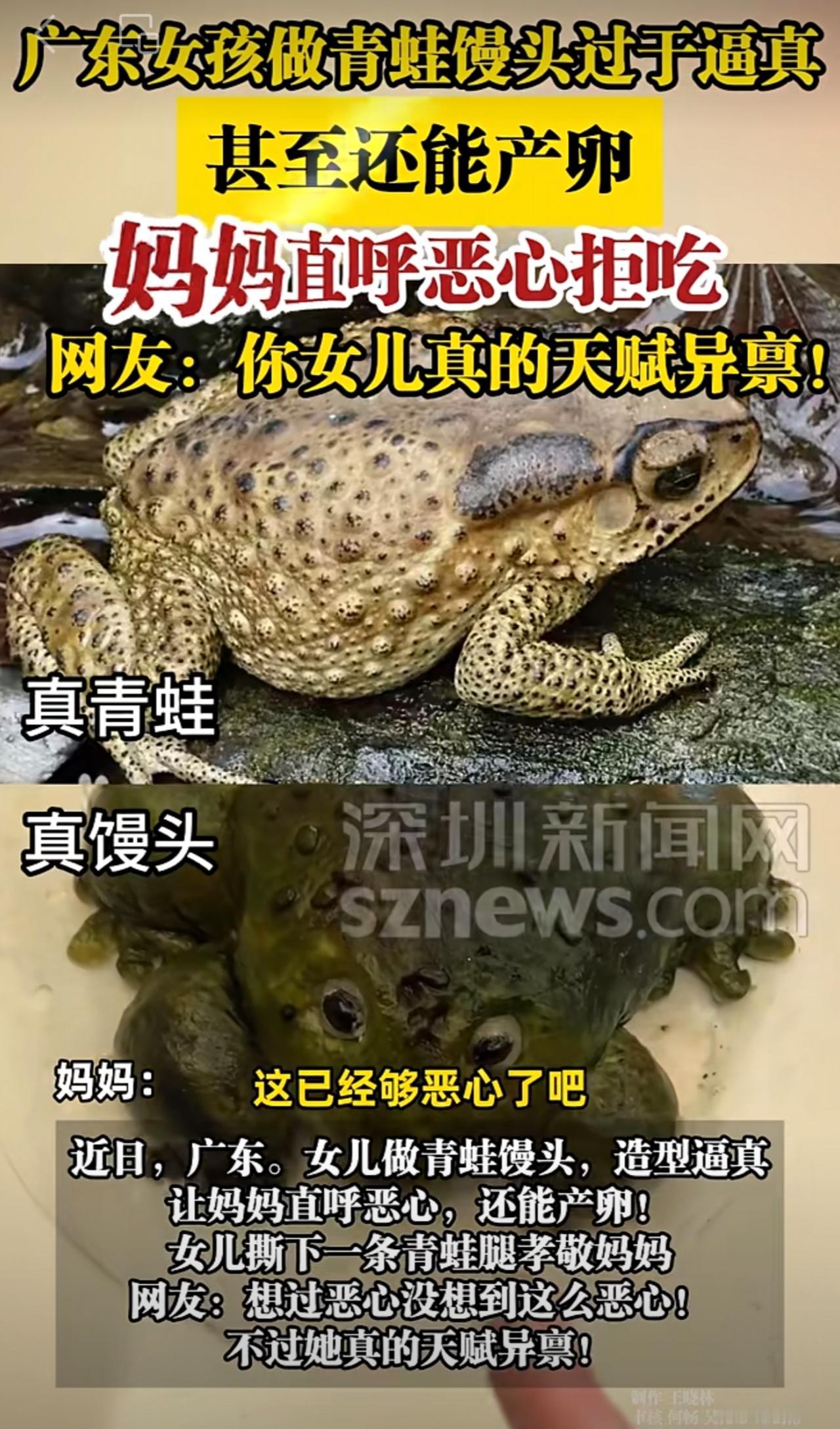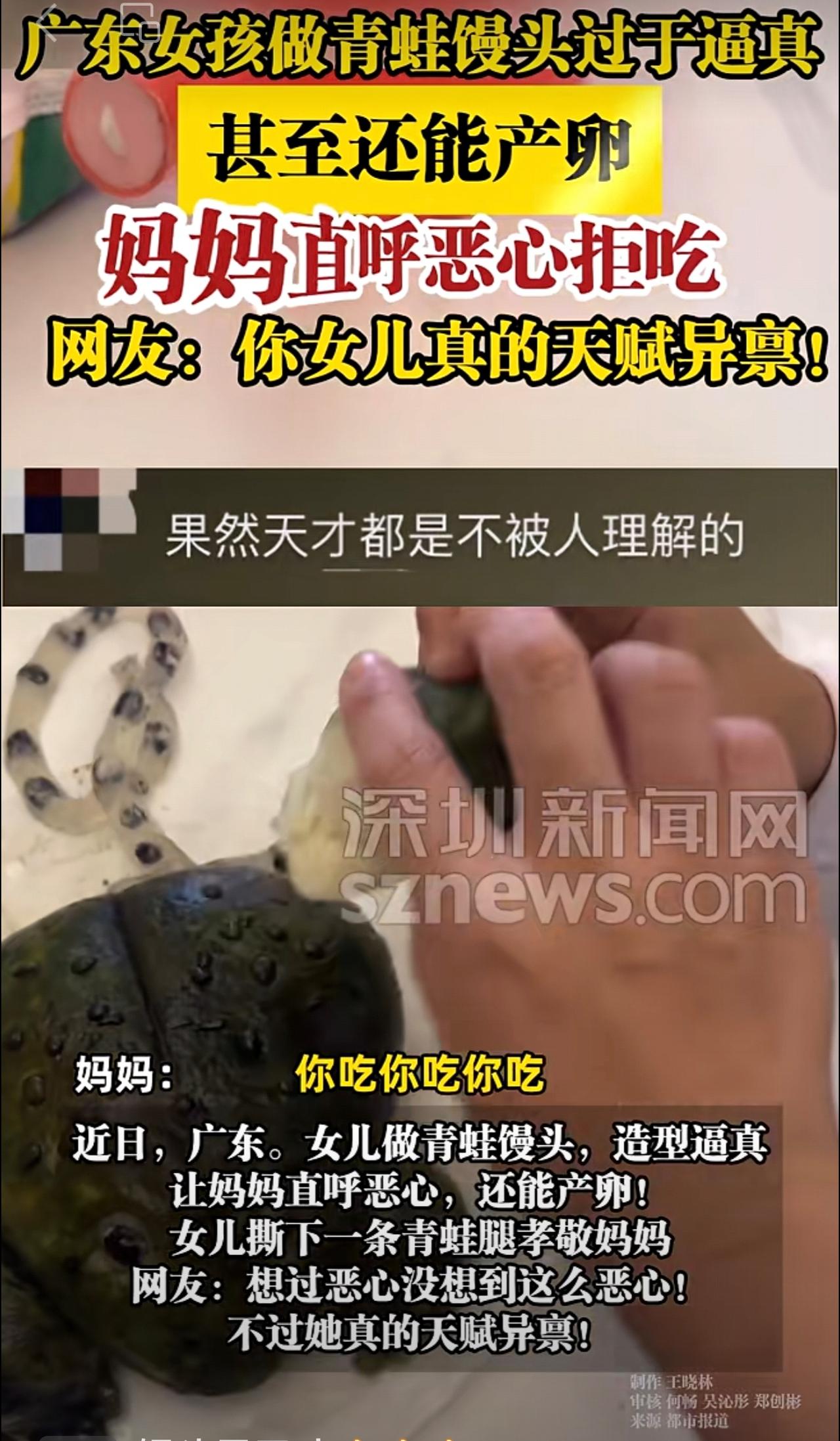 【广东女孩做青蛙馒头过于逼真,甚至还能产卵,妈妈直呼恶心拒吃】(制作 王晓林 审核 何畅 吴沁彤 郑创彬)